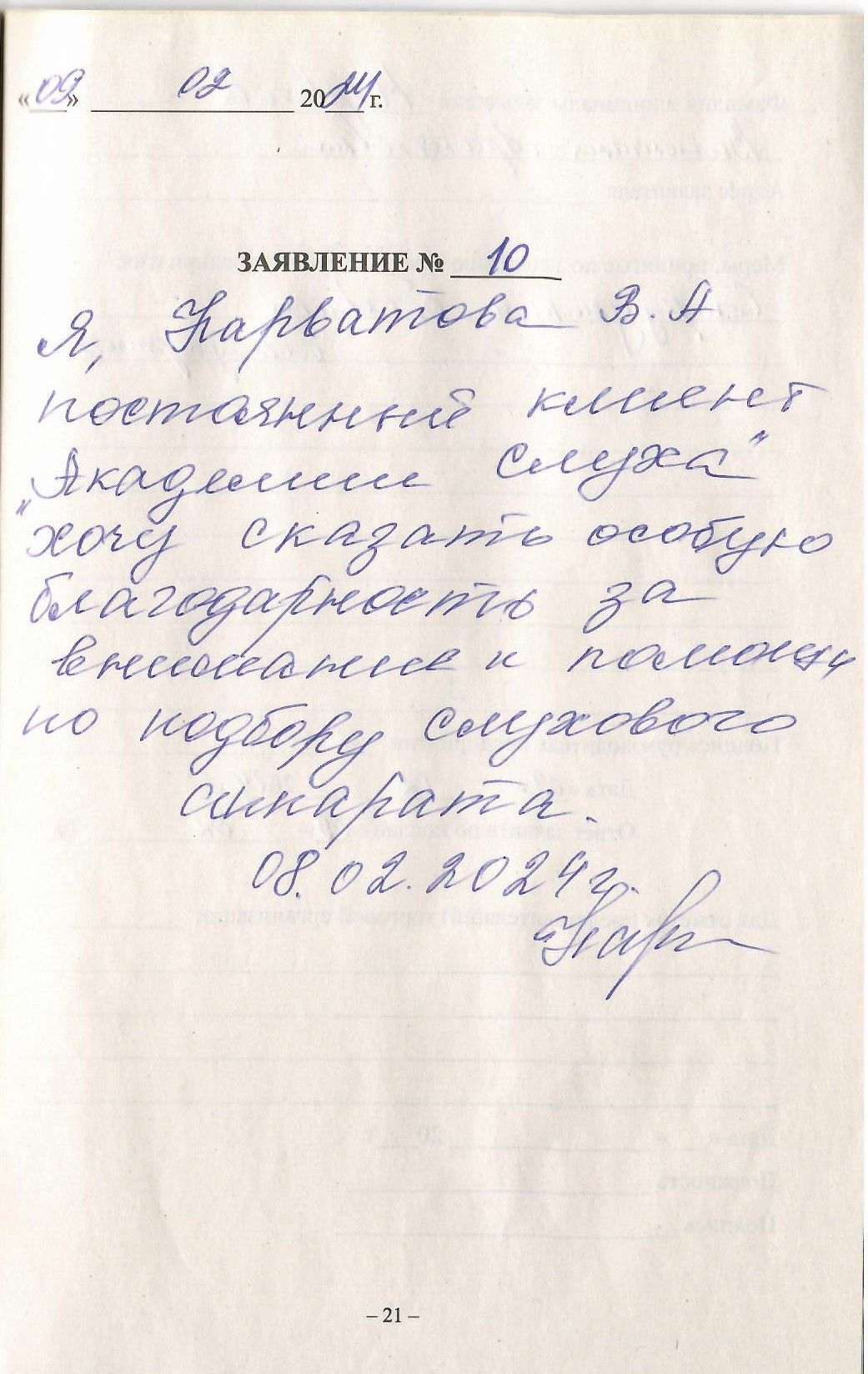 Я, Волков Н.С. воспользовался фирмой "Академия Слуха". Очень доволен обслуживанием и работой работника фирмы. Желаю так же и дальше работать. С уважением. Волков Н.С.