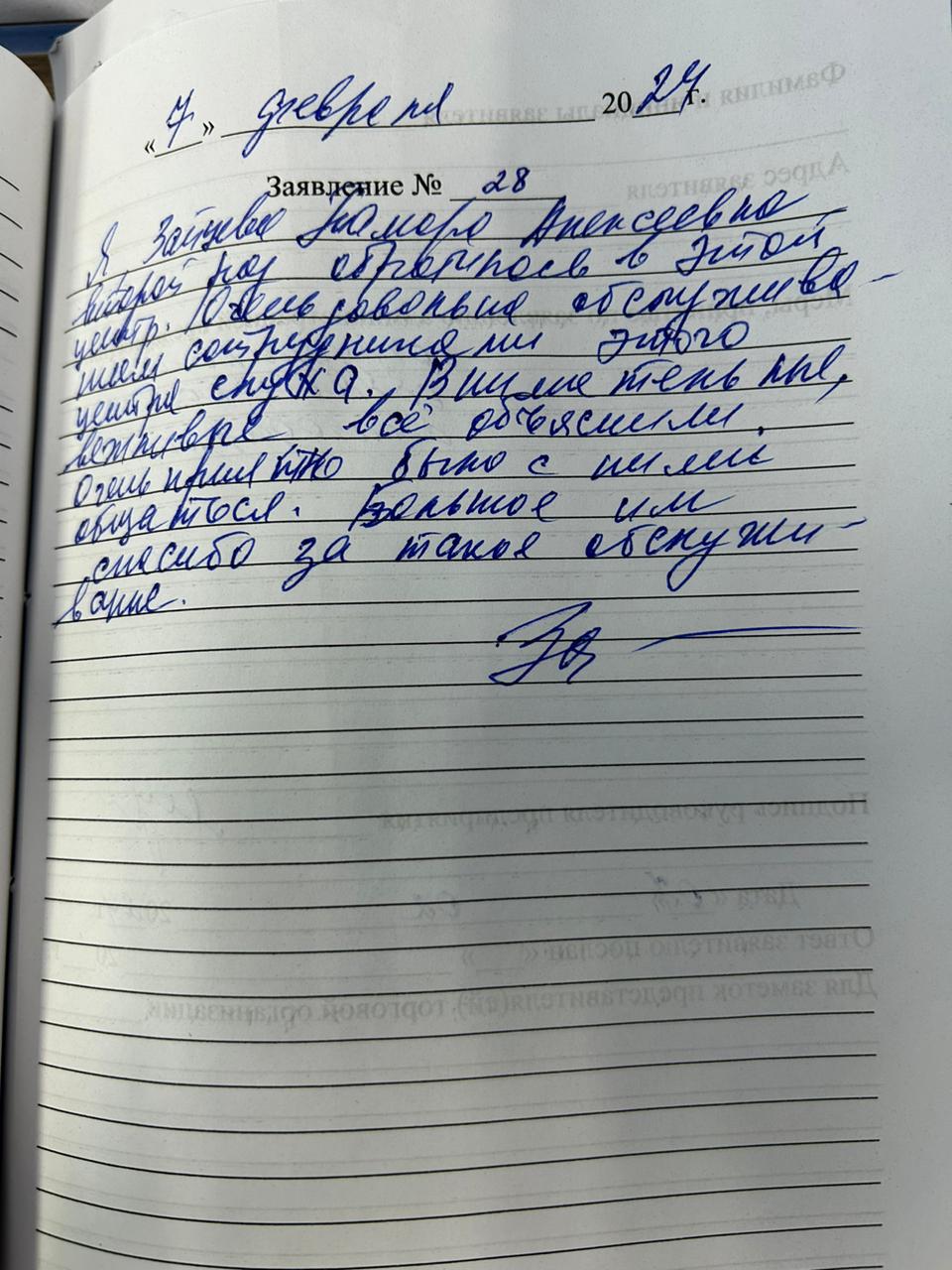 Я, Зайцева Тамара Алексеевна, второй раз обращаюсь в этот центр. Очень довольна обслуживанием сотрудниками этого центра. Внимательные, вежливые, все объяснили. Очень приятно с ними было общаться. Большое спасибо, за такое обслуживание.