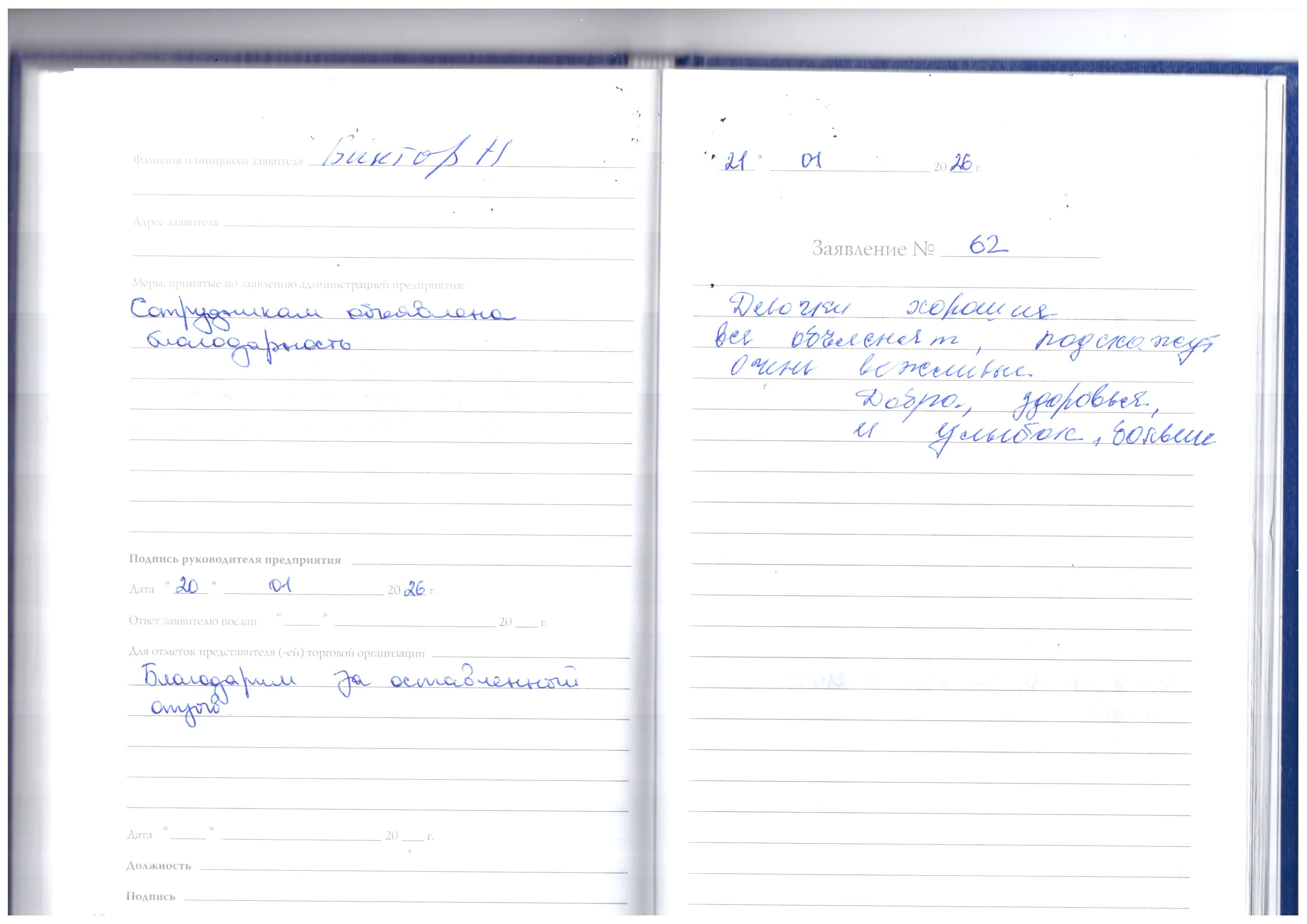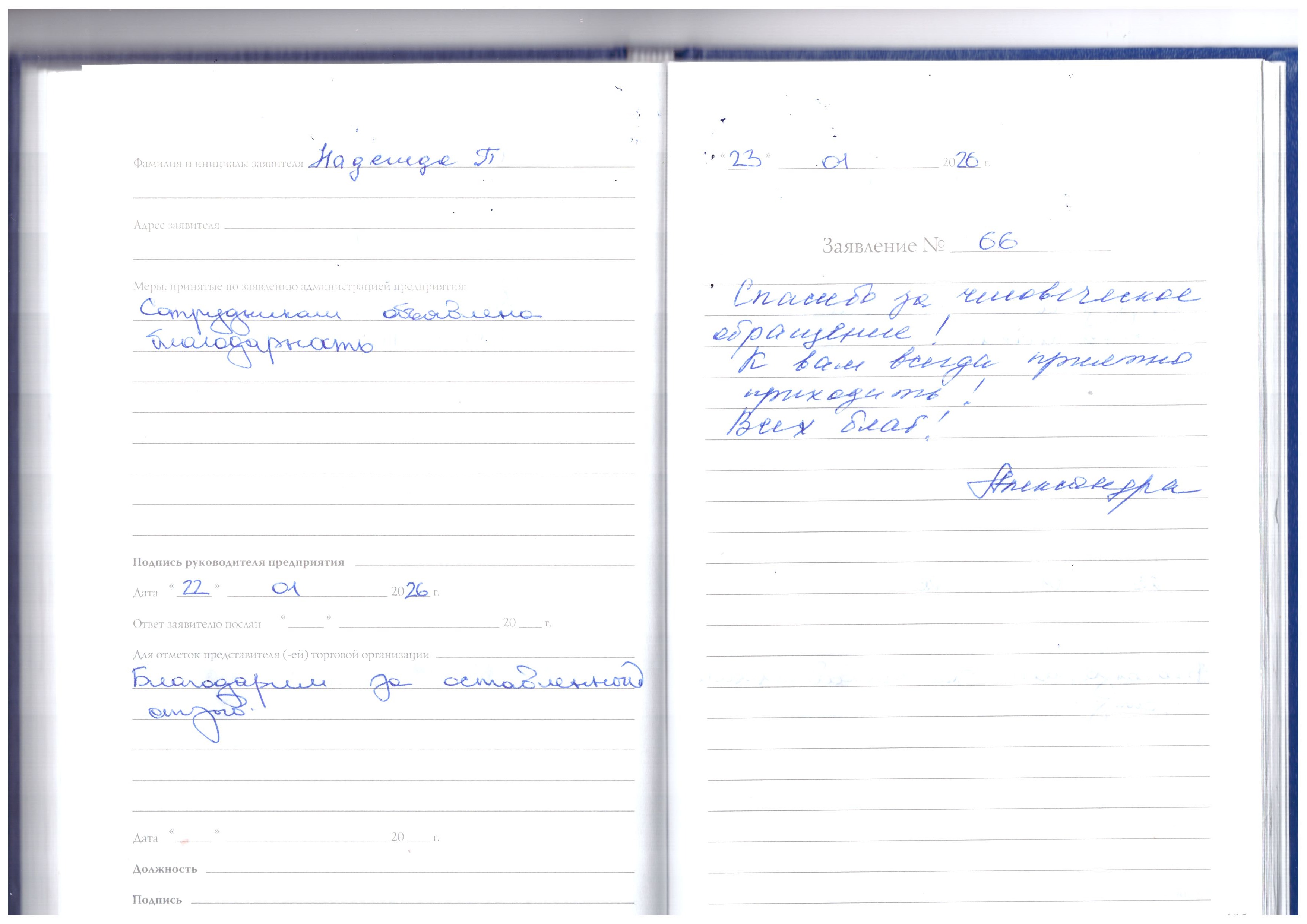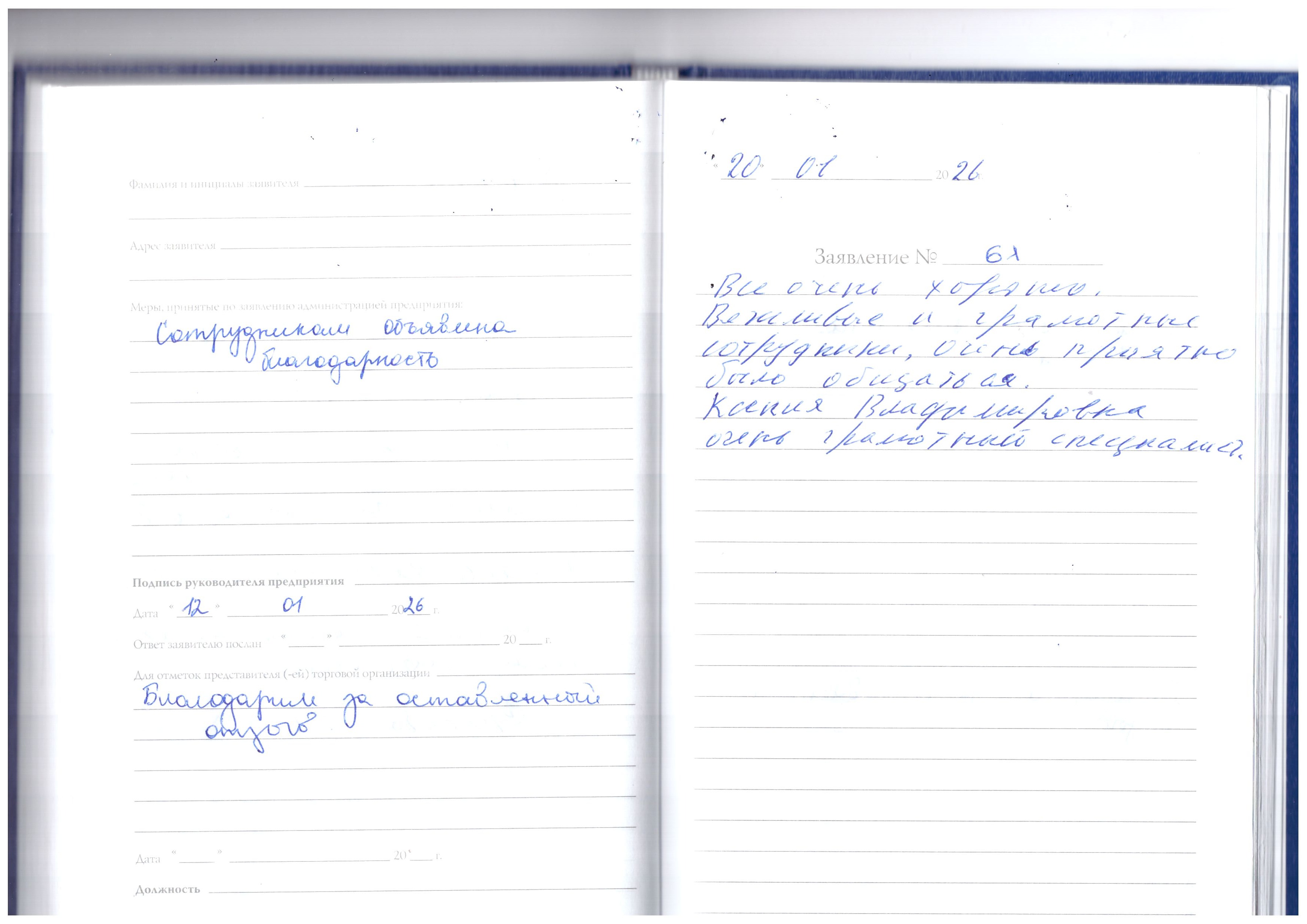 Спасибо большое за внимательное отношение и прекрасное обслуживание. Сысоев Б.И.