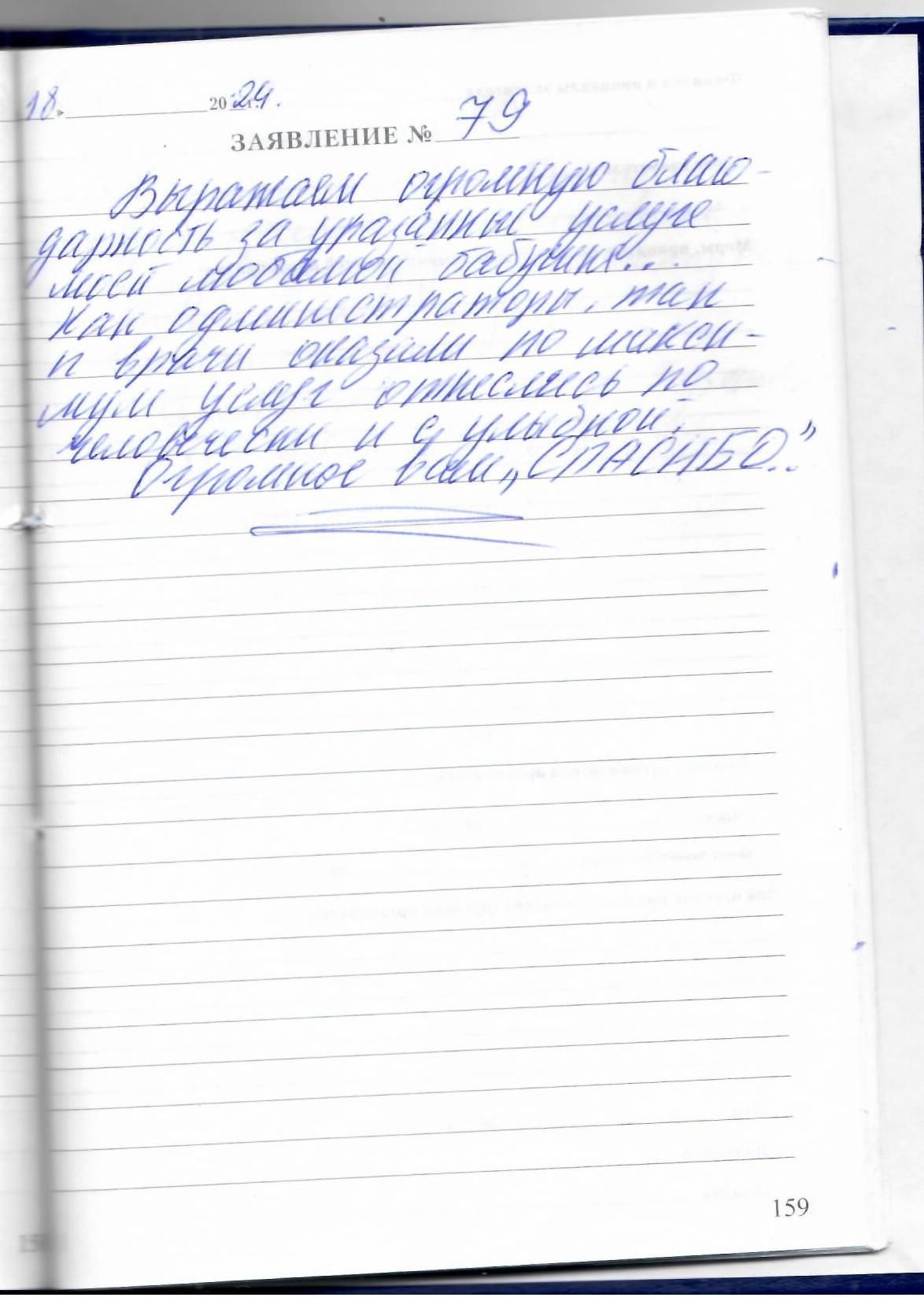 Выражаем огромную благодарность за оказанные услуги моей любимой бабушке.