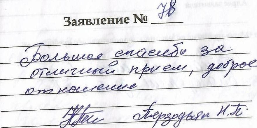 Большое спасибо за отличный прием ,доброе отношение.16.01.2024.Перзодьян Н.П.