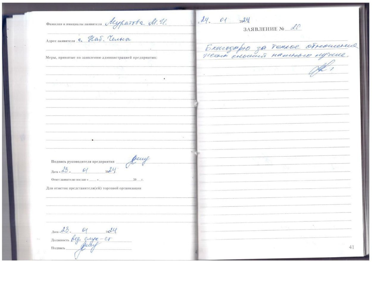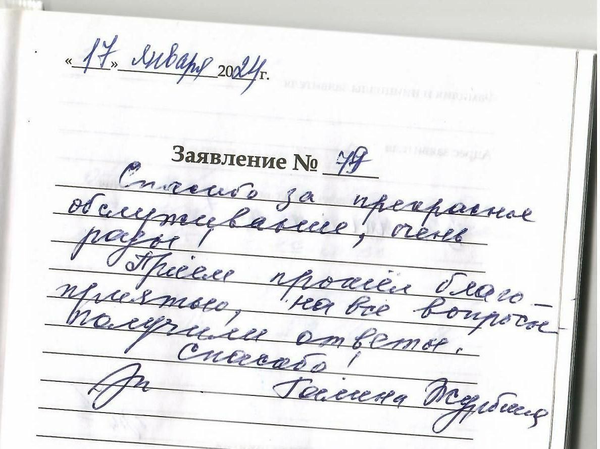 Большое спасибо за отличный прием ,доброе отношение.16.01.2024.Перзодьян Н.П.