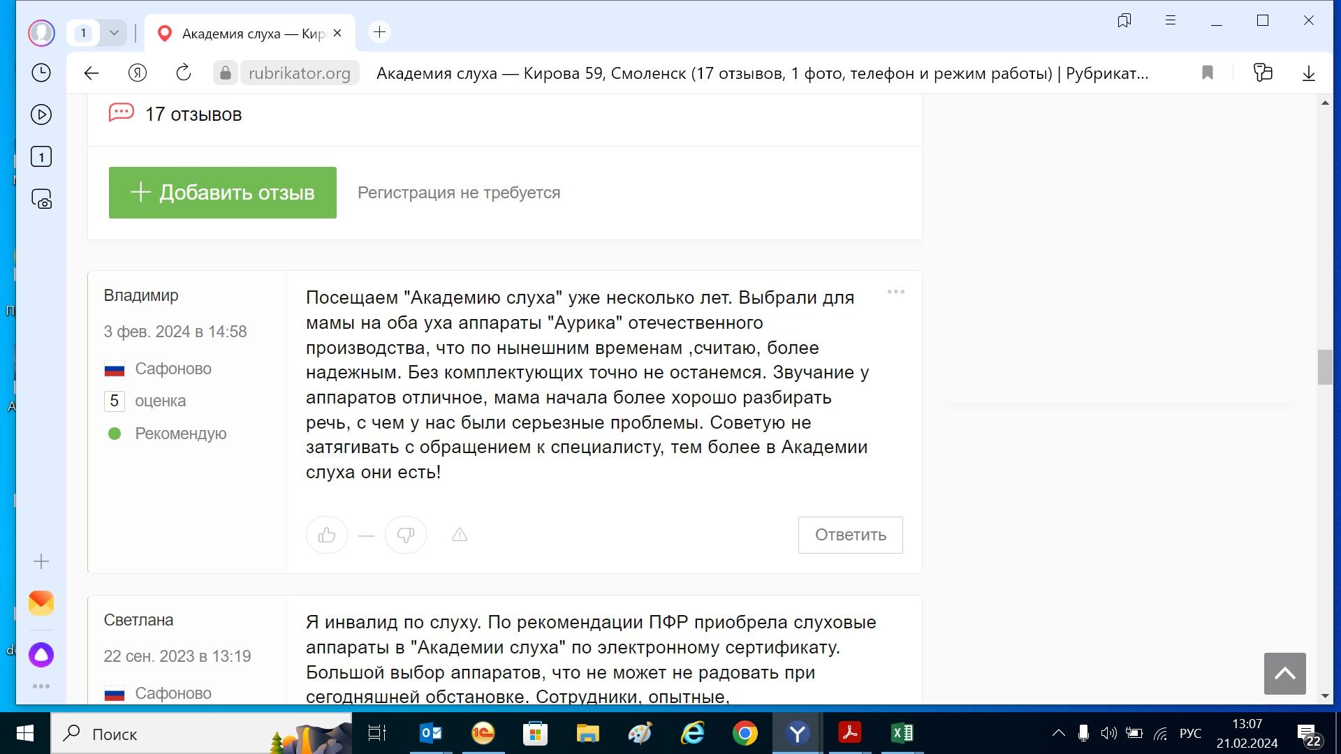 Посещаем "Академию слуха уже несколько лет. Выбрали для мамы на оба уха аппараты "Аурика" отечественного производства, что по нынешним временам, считаю, более надежным. Без комплектующих точно не останемся. Звучание аппаратов отличное, мама начала более хорошо разбирать речь, с чем у нас были серьезные проблемы. Советую не затягивать с обращением к специалисту, тем более в Академии слуха они есть .