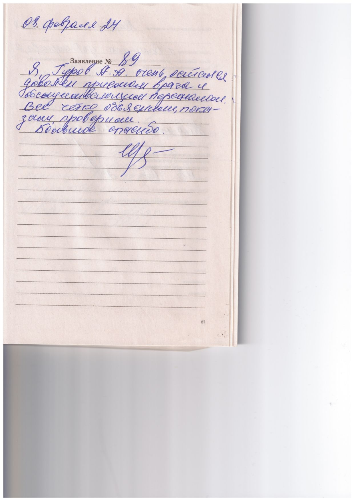 Спасибо за обслуживание, за терпение к старым и больным людям. Спасибо.