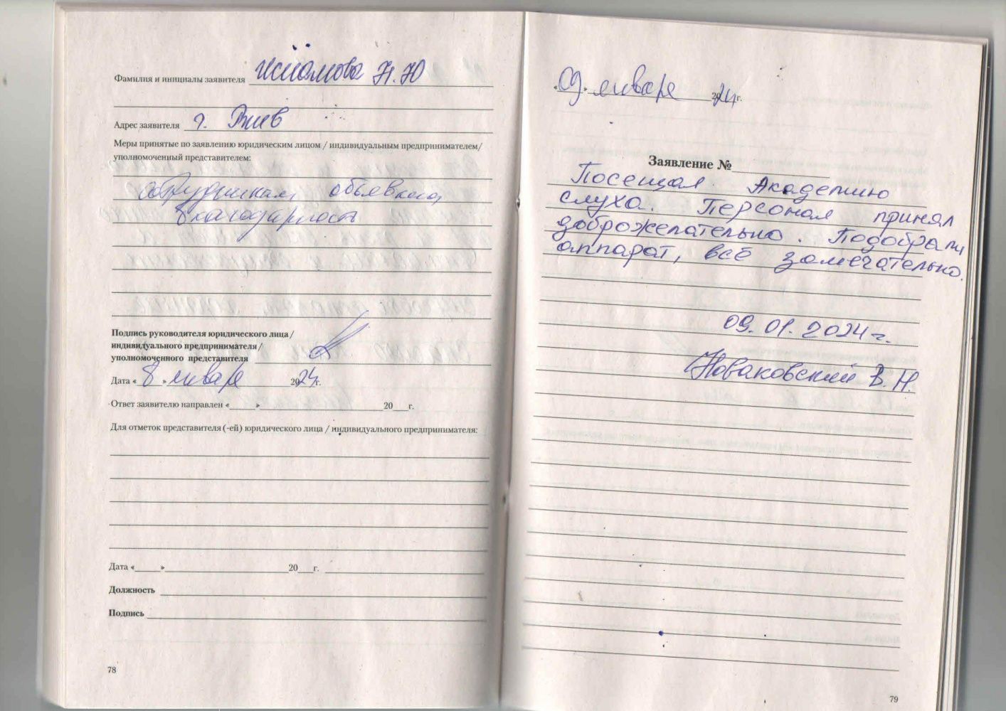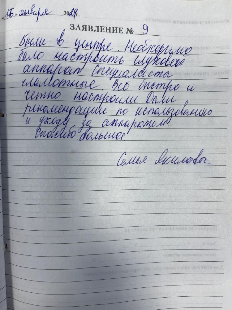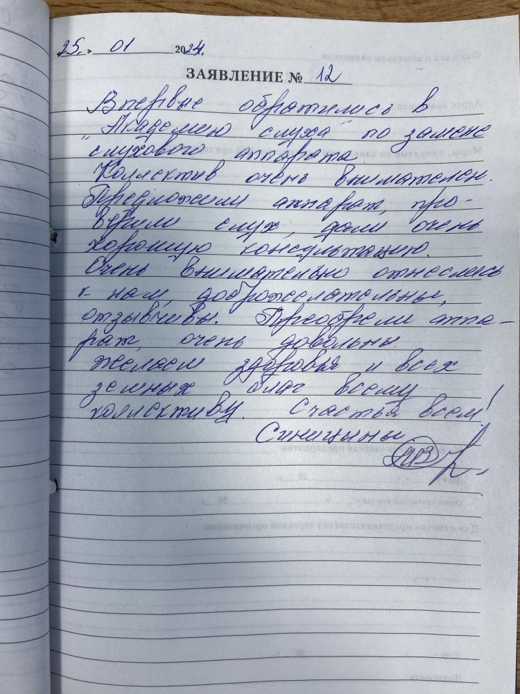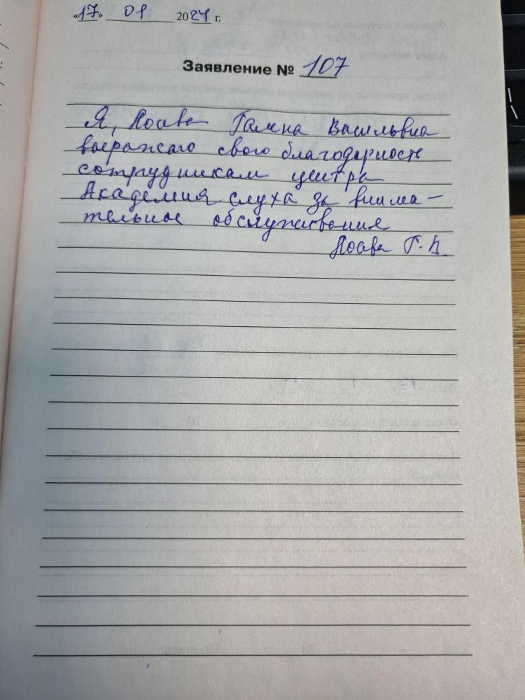 17.01.2024 Я, Лосева Галина Васильевна, выражаю свою благодарность сотрудникам центра Академия слуха за внимательное обслуживание