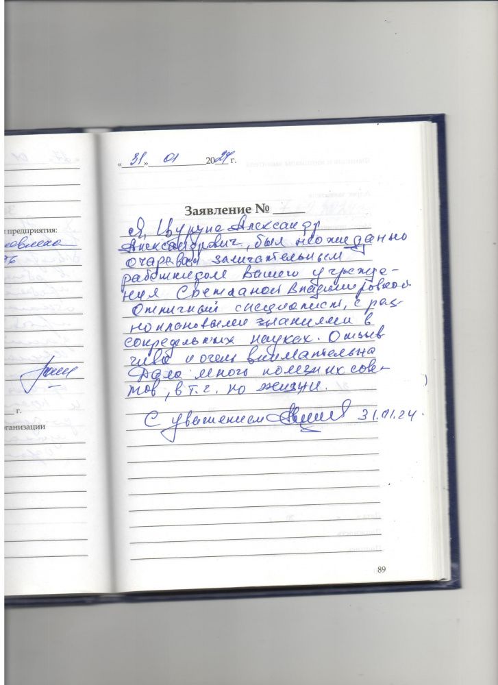 Я. Цурупа Александр Александрович, был неожиданно очарован замечательным работником Вашего учреждения Светланой Владимировной. Отличный специалист, с разноплановыми знаниями в сопредельных науках. Отзывчива и очень внимательна. Дала много полезных советов в т.ч. по жизни. С уважением .