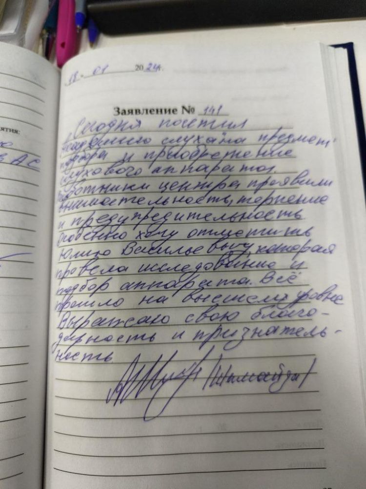 Сегодня посетил академию слуха на предмет подбора и приобретения слухового аппарата. Работники центра проявили внимательность, терпение и предупредительность. Особенно хочу отметить Юлию Васильевну, которая провела исследование и подбор аппарата. Все прошло на высшем уровне. Выражаю свою благодарность и признательность.
