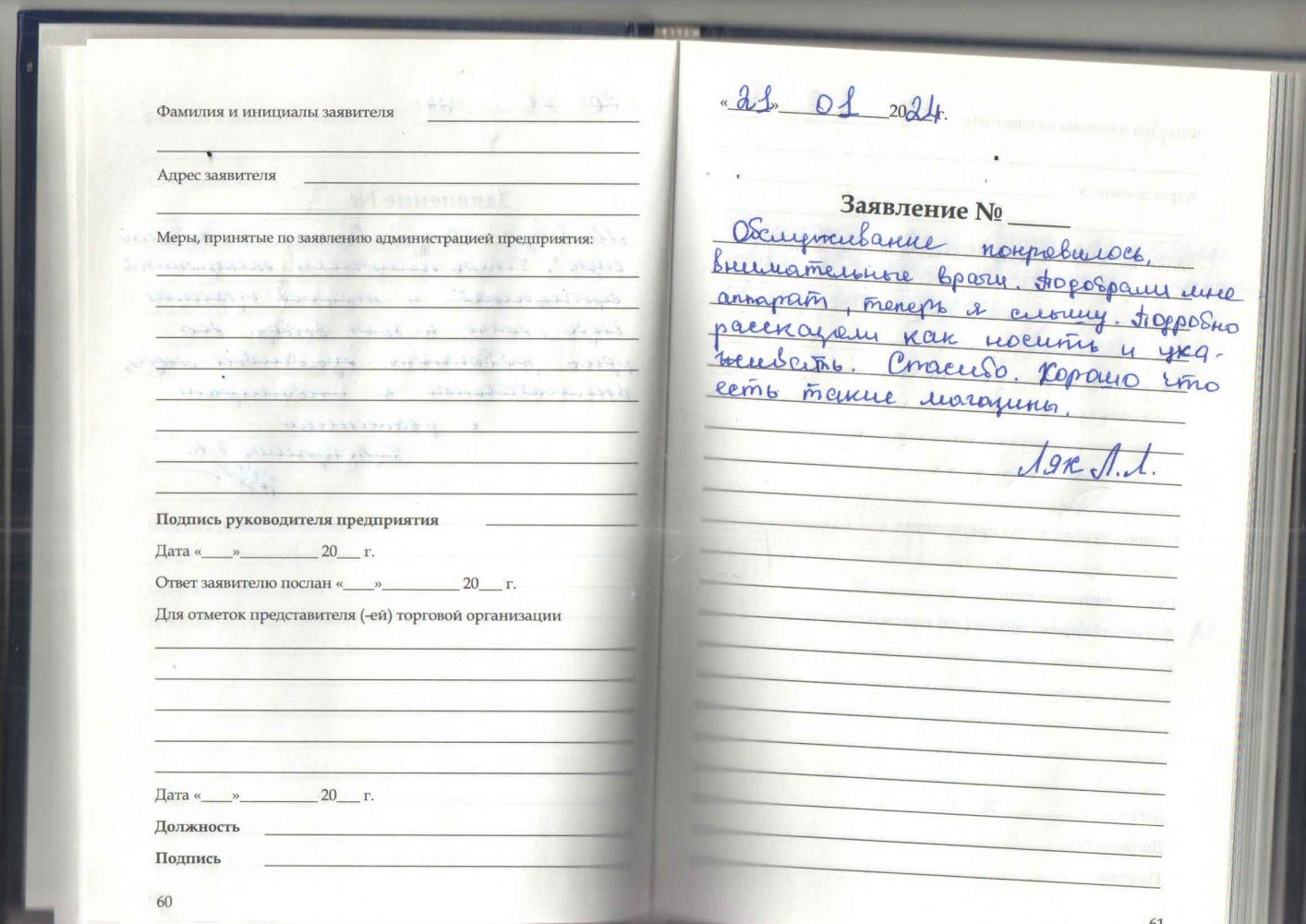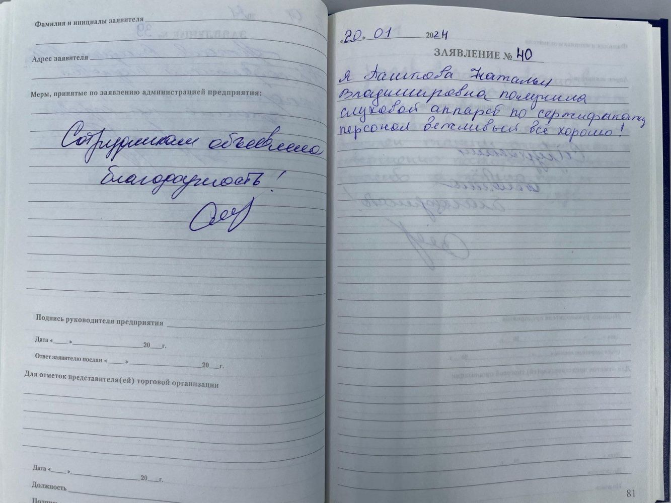 Я, Пашкова Наталья Владимировна получила слуховой аппарат по сертификату ,персонал вежливый, всё хорошо!