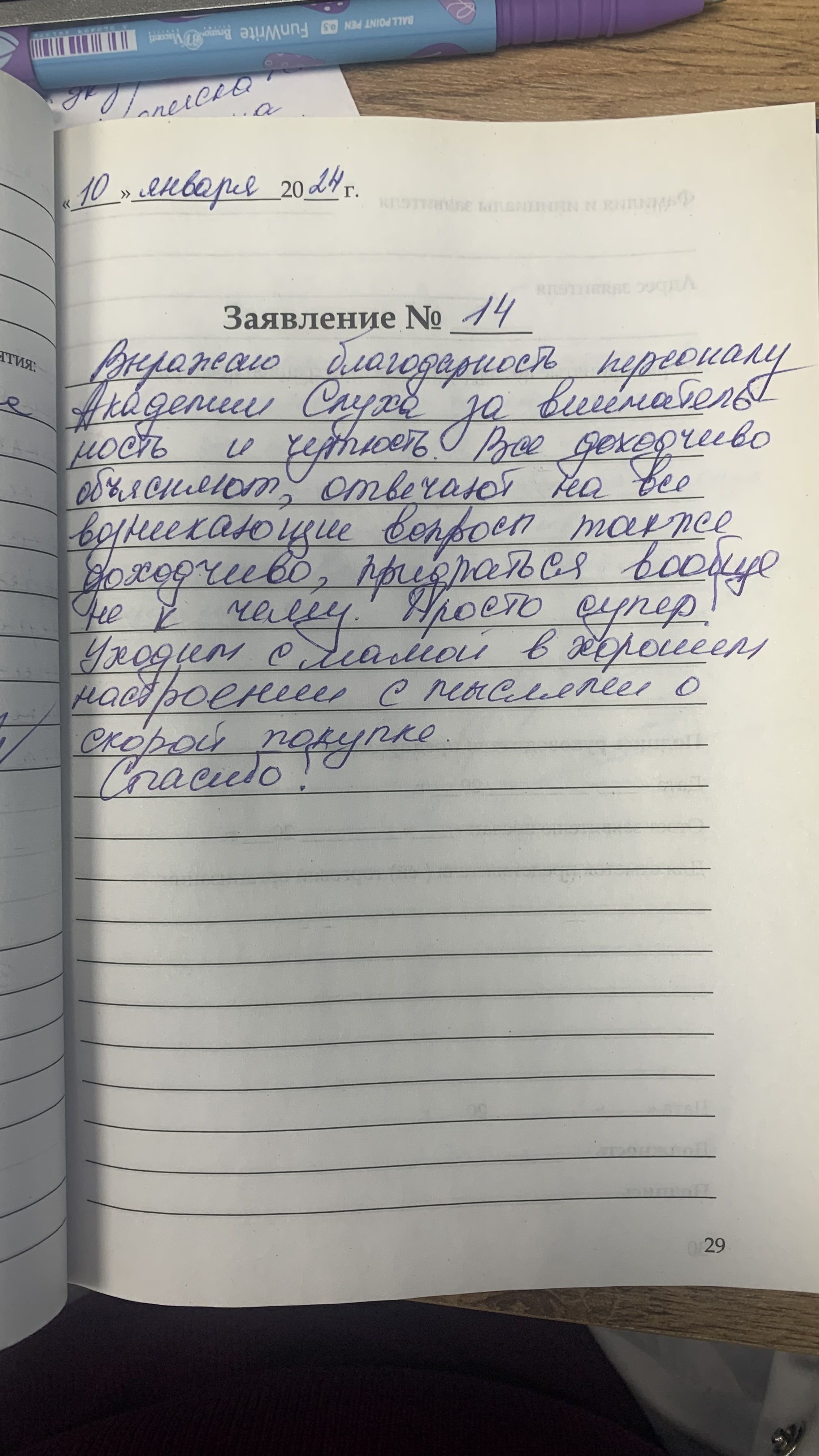 Спасибо девочкам из центра академия Слуха, за хорошее отношение, всегда приветливые и выслушают, и посочувствуют. Спасибо врачу Хасибу за грамотную консультацию.