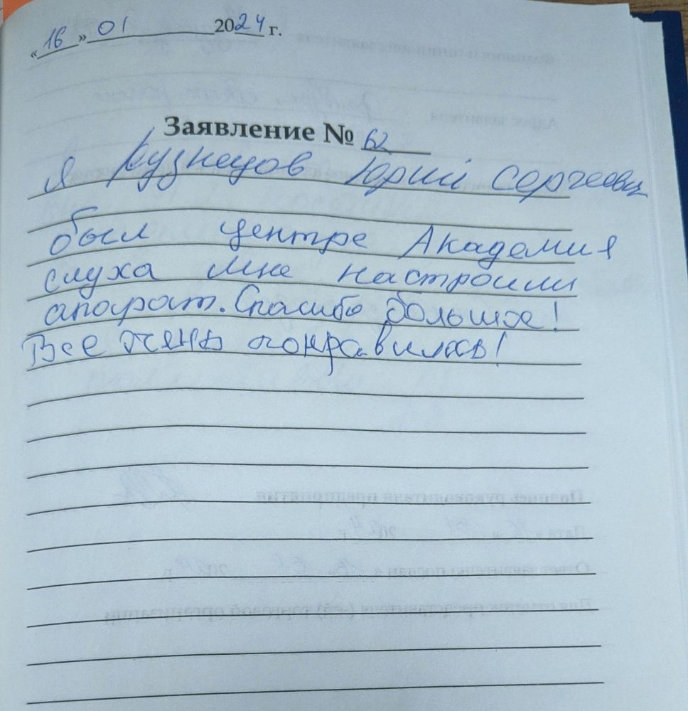 я, Кузнецов Юрий Сергеевич был в "Академии слуха" мне настроили аппарат. Спасибо большое! Все очень понравилось!