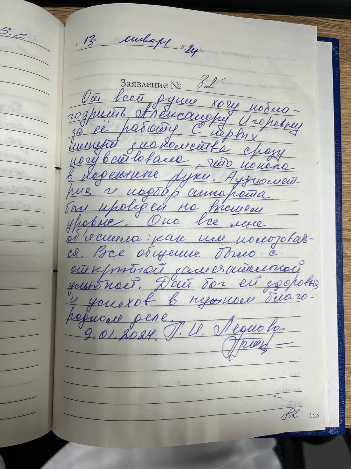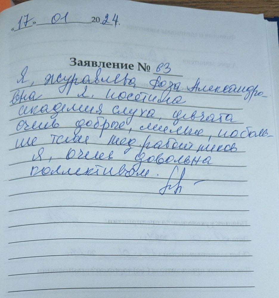 От всей души хочу поблагодарить Александру Игоревну за ее работу. С первых минут знакомства сразу почувствовала, что попала в надежные руки. Аудиометрия и подбор аппарата был проведен на высшем уровне. Она все мне объяснила: как им пользоваться. Все общение было с открытой замечательной улыбкой. Дай бог ей здоровья и успехов в нужном благородном деле. 9.01.2024. Г.И.Леонова