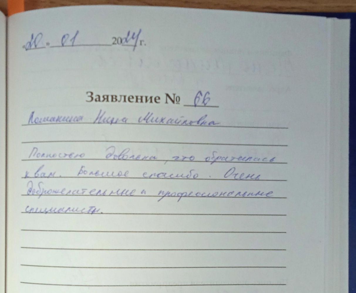 Полностью довольна , что обратилась к вам. Большое спасибо. Очень доброжелательные специалисты