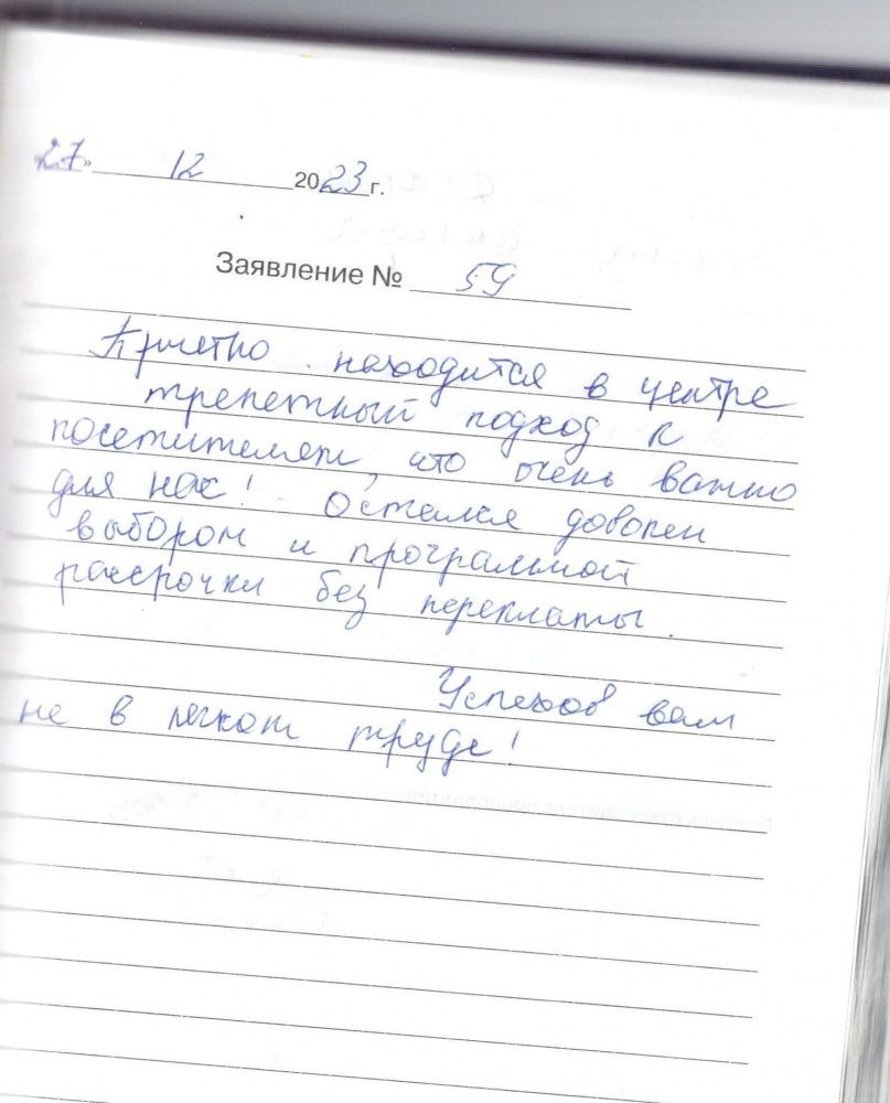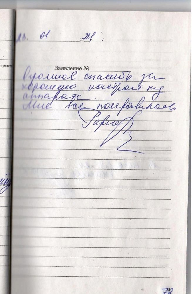 Огромное спасибо за хорошую настройку аппарата. Мне всё понравилось.