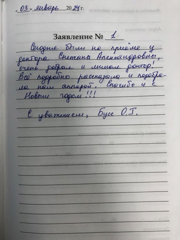 Сегодня были на приеме у доктора Снежаны Александровны, очень добрая и милая доктор! Все подробно рассказала и подобрала нам аппарат. Спасибо и с Новым годом!!!