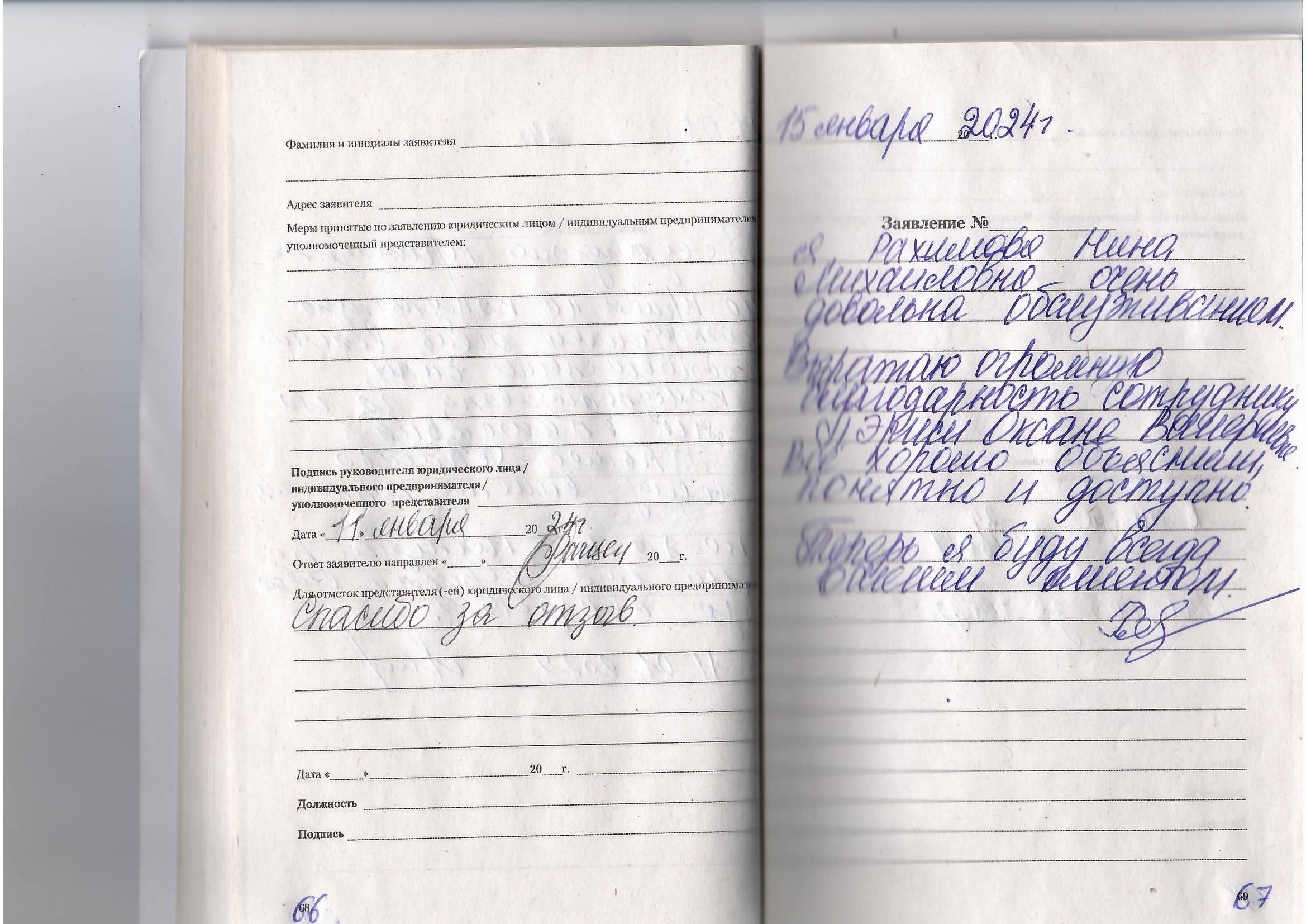 Очень приятно удивлена обслуживанием. Объяснили, показали разжевали. Спасибо огромное за обслуживание. Придем ещё! Шабардина И.В., г. Киров ул. Волкова