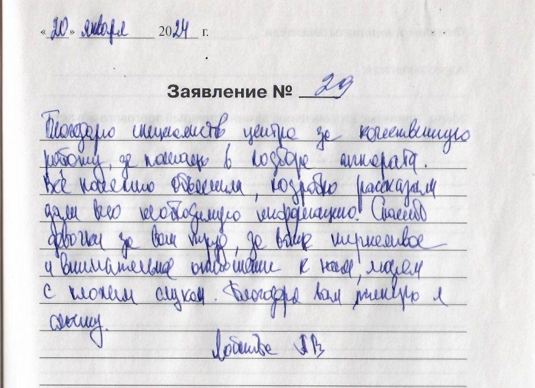 Мужу подбирали аппарат. Примерили несколько, остановились на одном. Спасибо Марии Сергеевне за терпение и внимательное отношение к нам пожилым людям. Муж Яковкин Владимир Иванович так же очень благодарен. Спасибо!