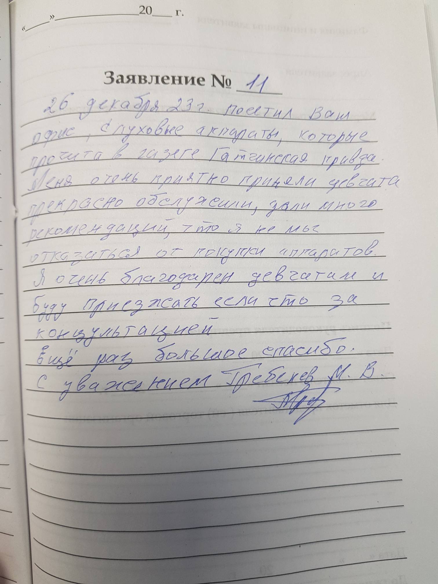 26 декабря 23г. посетил Ваш офис, слуховые аппараты, которые прочитал в газете Гатчинская правда. Меня очень приятно приняли девчата, прекрасно обслужили, дали много рекомендаций, что я не мог отказаться от покупки аппаратов. Я очень благодарен девчатам и буду приезжать если что за консультацией. Ещё раз большое спасибо.