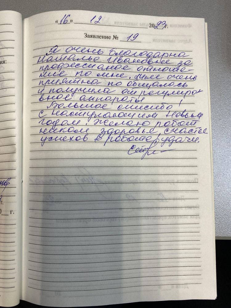 Я Иван Иванович, был на приёме у Виктории Вячеславовны. Как всегда все на высшем уровне. Спасибо.