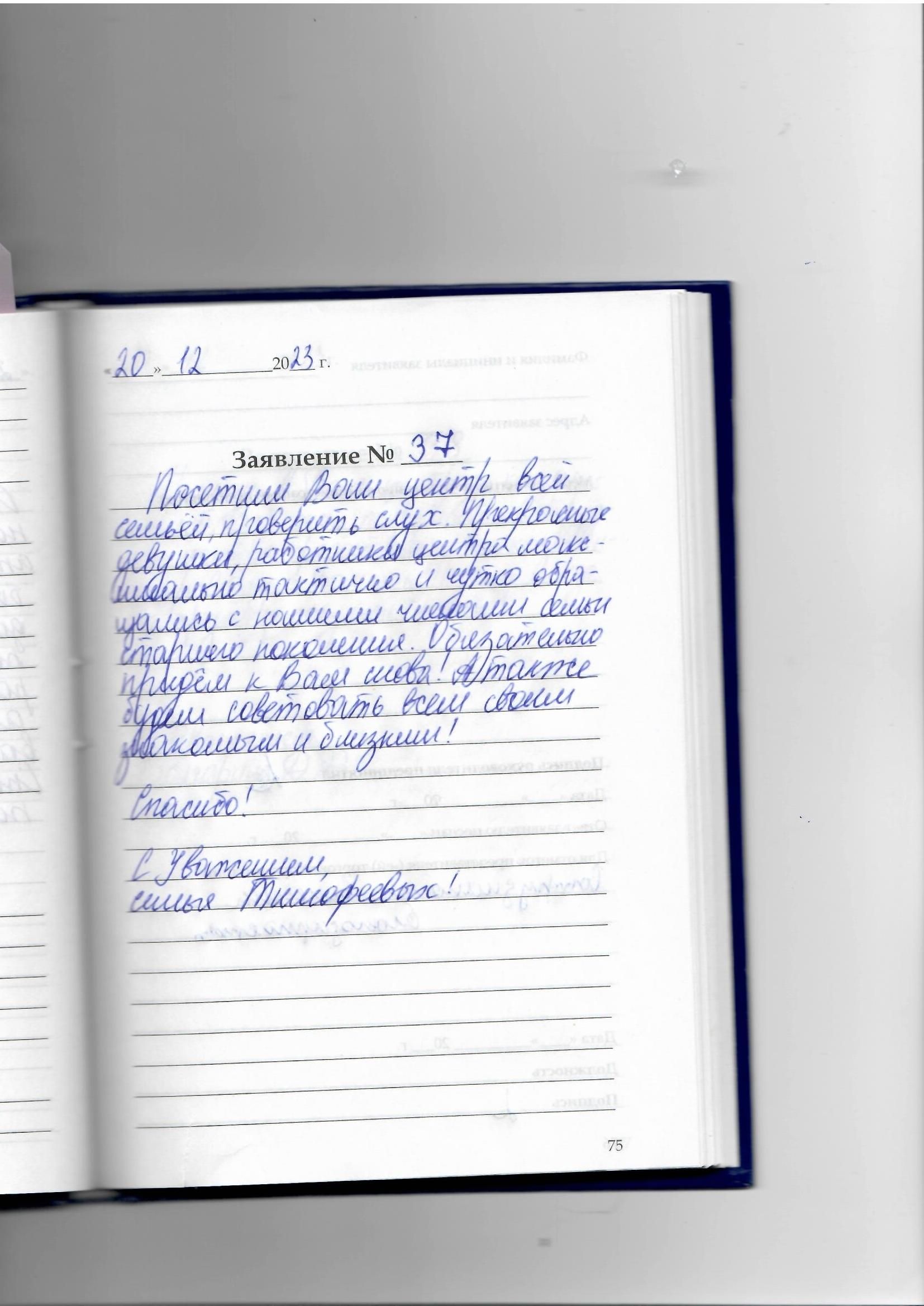 Постели Ваш центр всей семьей, проверить слух. Прекрасные девушки, работники центра максимально тактично и чутко обращались с нашими членами семьи старшего поколения. Обязательно придем к Вам снова! А также будем советовать всем своим знакомым и близким!