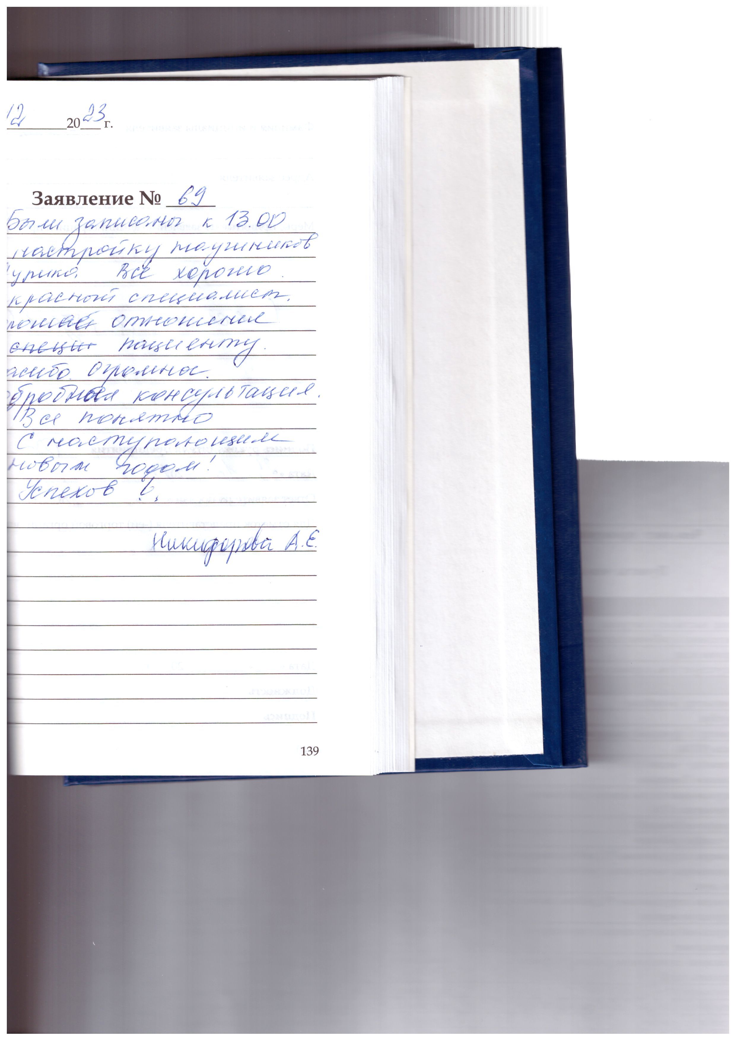 Были записаны к 13-00 на настройку наушников Аурика. Все хорошо, прекрасный специалист, хорошее отношение к пациенту. Спасибо огромное. Подробная консультация, все понятно. С наступающим новым годом! Успехов!