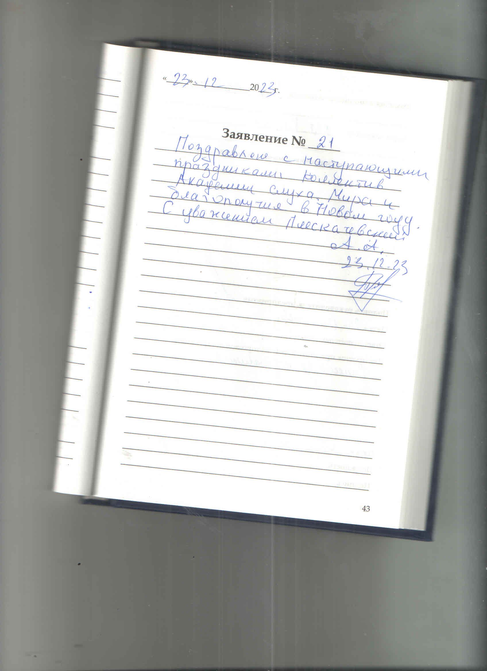 Поздравляю с наступающим праздником коллектив Академии слуха .Мира и благополучия в Новом году.С уважением Плескачевский А.А..23.12.23