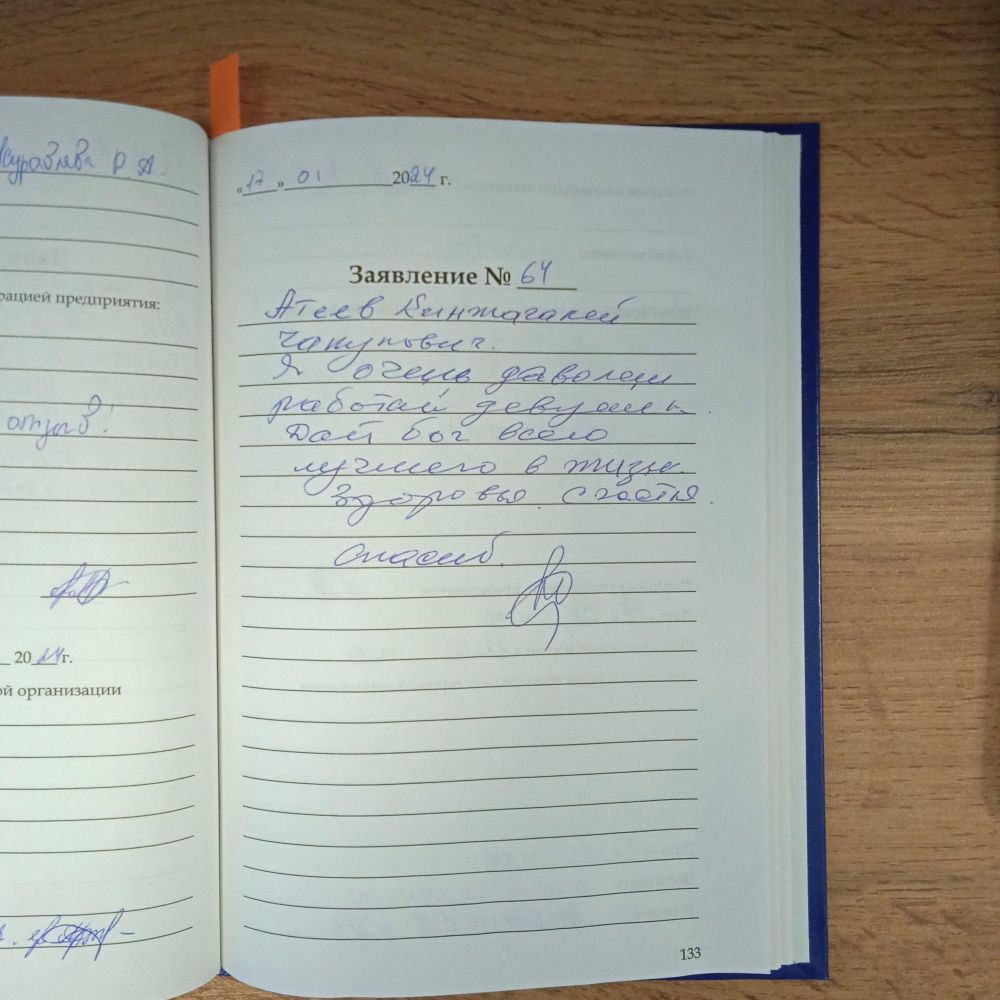 Атеев Кинжагалей Чакунович. Я очень доволен работой девушек, дай бог всего лучшего в жизни, здоровья, счастья Спасибо.