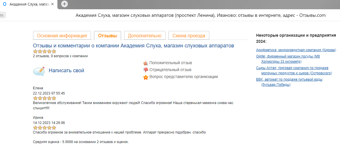 От всей души хочу поблагодарить Александру Игоревну за ее работу. С первых минут знакомства сразу почувствовала, что попала в надежные руки. Аудиометрия и подбор аппарата был проведен на высшем уровне. Она все мне объяснила: как им пользоваться. Все общение было с открытой замечательной улыбкой. Дай бог ей здоровья и успехов в нужном благородном деле. 9.01.2024. Г.И.Леонова
