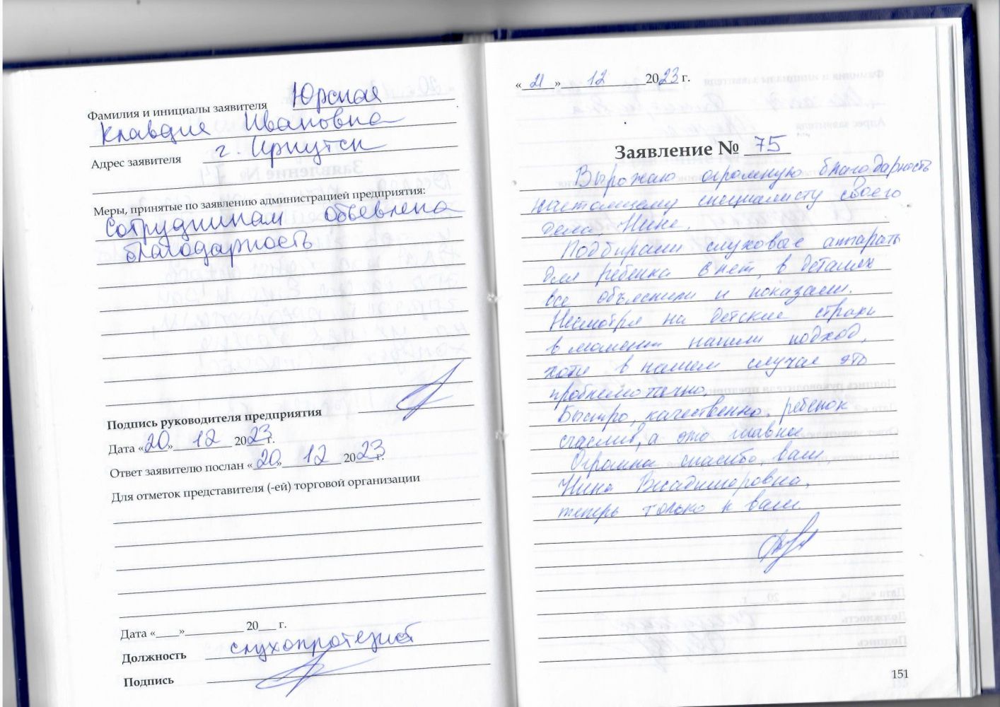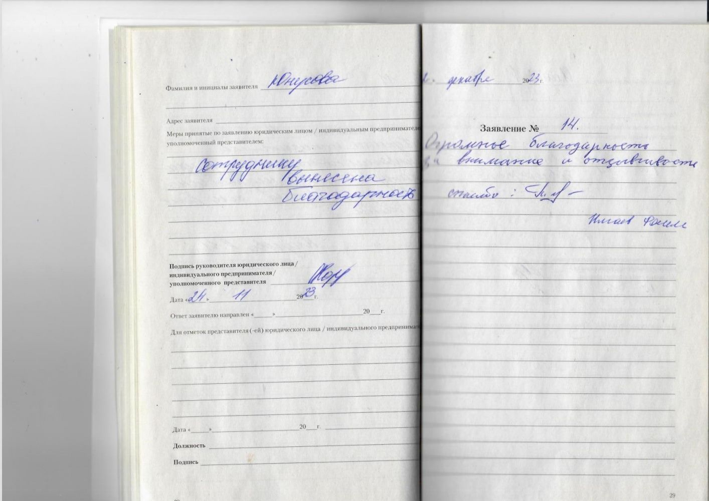Я благодарю сотрудников за то что они делают. Спасибо! Подпись.