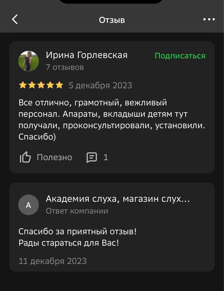 Спасибо! А ведь правда проверили слух бесплатно. Мы привыкли что за все нужно платить, а тут чудеса!. Рекомендую. Подпись.