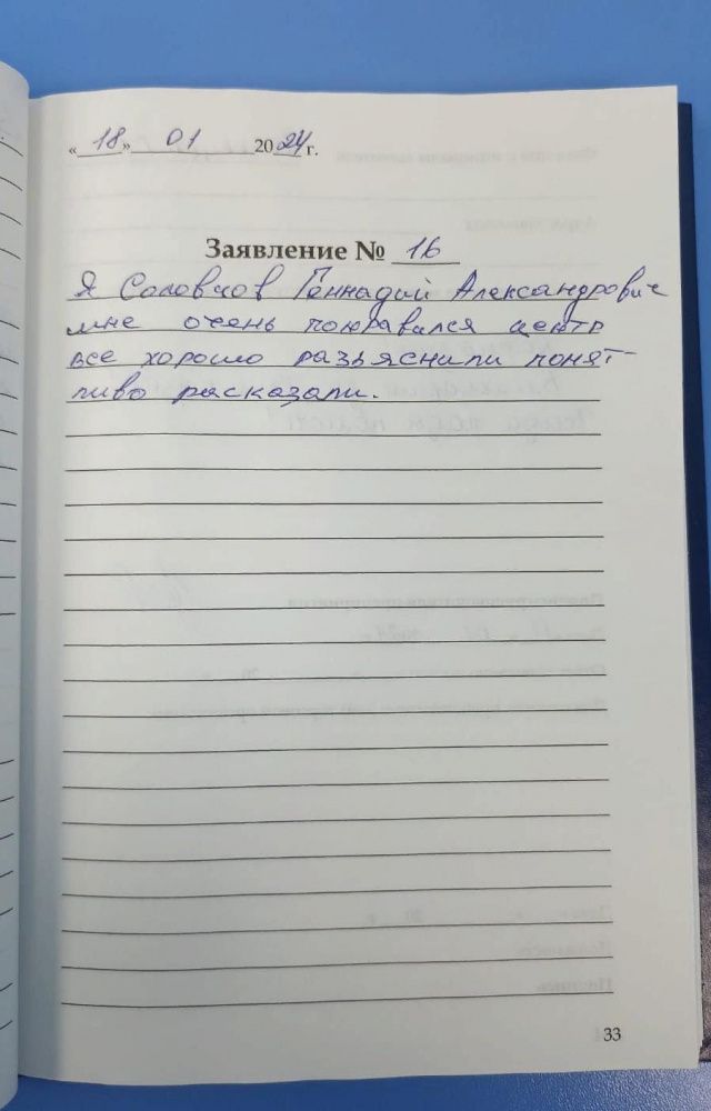 Я Соловцов Геннадий Александрович, мне очень понравился центр, все хорошо разъяснили, понятливо рассказали.