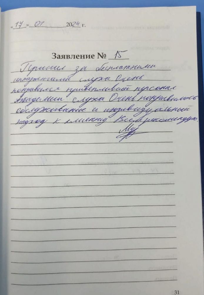 Я Никаноров А.М. посетил Академию Слуха и выражаю благодарность обслуживающему коллективу за внимание ко мне, за чуткость и работу. Большое спасибо им!