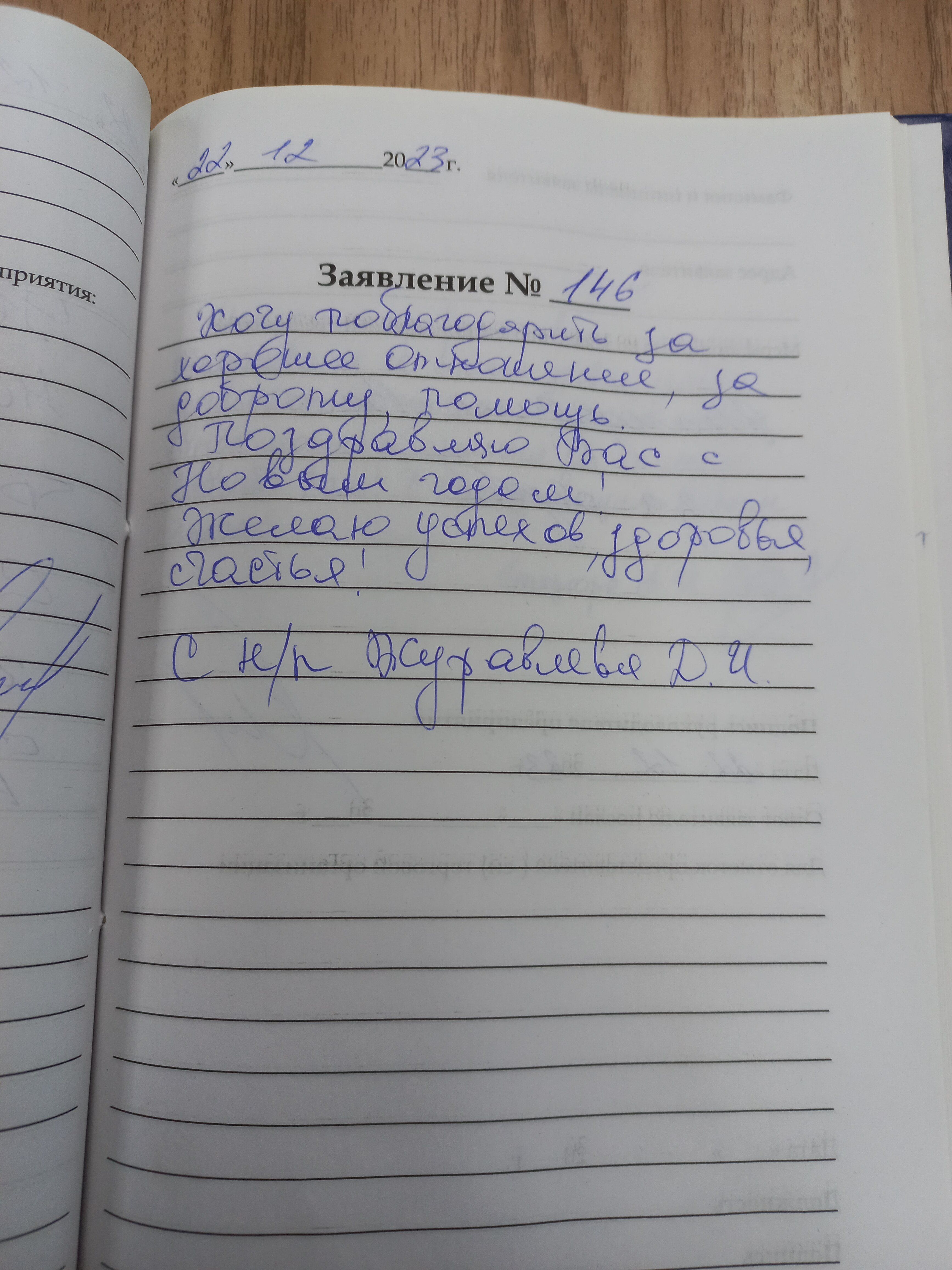 Хочу поблагодарить за хорошее отношение, за доброту, помощь.