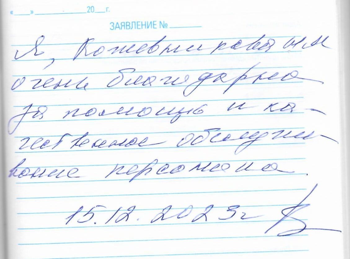 Я, Кожевникова Н.М. очень благодарна за помощь и качественное обслуживание персонала.