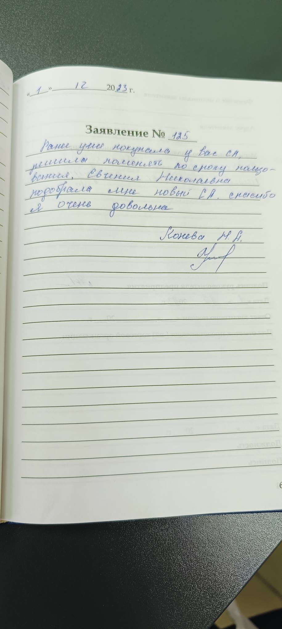 Раннее уже покупала у вас СА, решила поменять по сроку пользования, Евгения Николаевна подобрала мне новый СА. Спасибо я очень довольна.