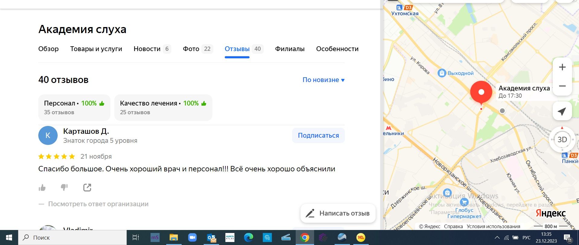Были записаны к 13-00 на настройку наушников Аурика. Все хорошо, прекрасный специалист, хорошее отношение к пациенту. Спасибо огромное. Подробная консультация, все понятно. С наступающим новым годом! Успехов!