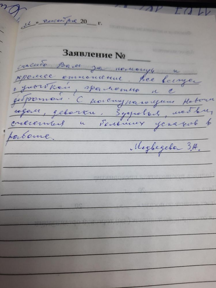 Спасибо Вам за помощь и хорошее отношение. Всегда с улыбкой, грамотно и с добротой. С наступающим Новым годом, девочки. Здоровья, любви и больших успехов в работе.