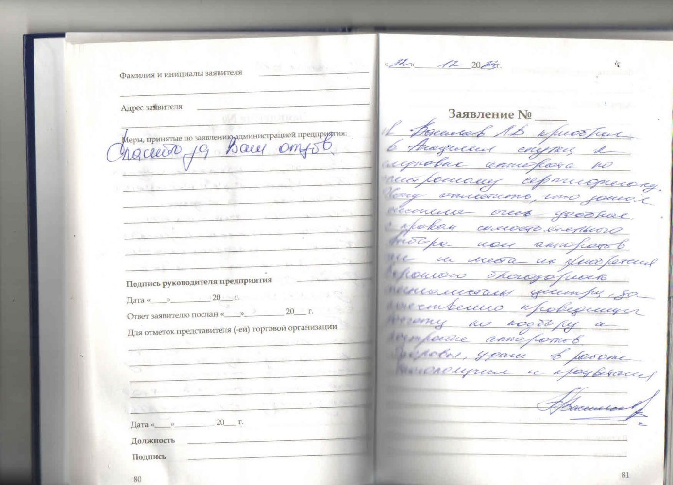 Спасибо за качественное обслуживание.
