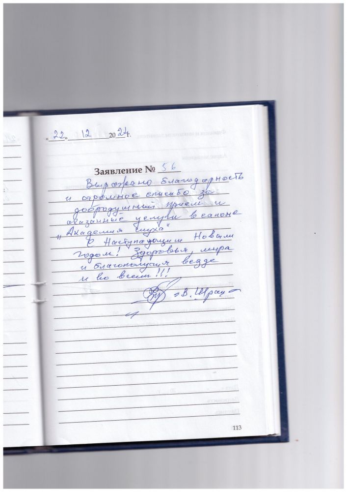 Выражаю благодарность и огромное спасибо за добродушный прием и оказанные услуги в салоне "Академия слуха".