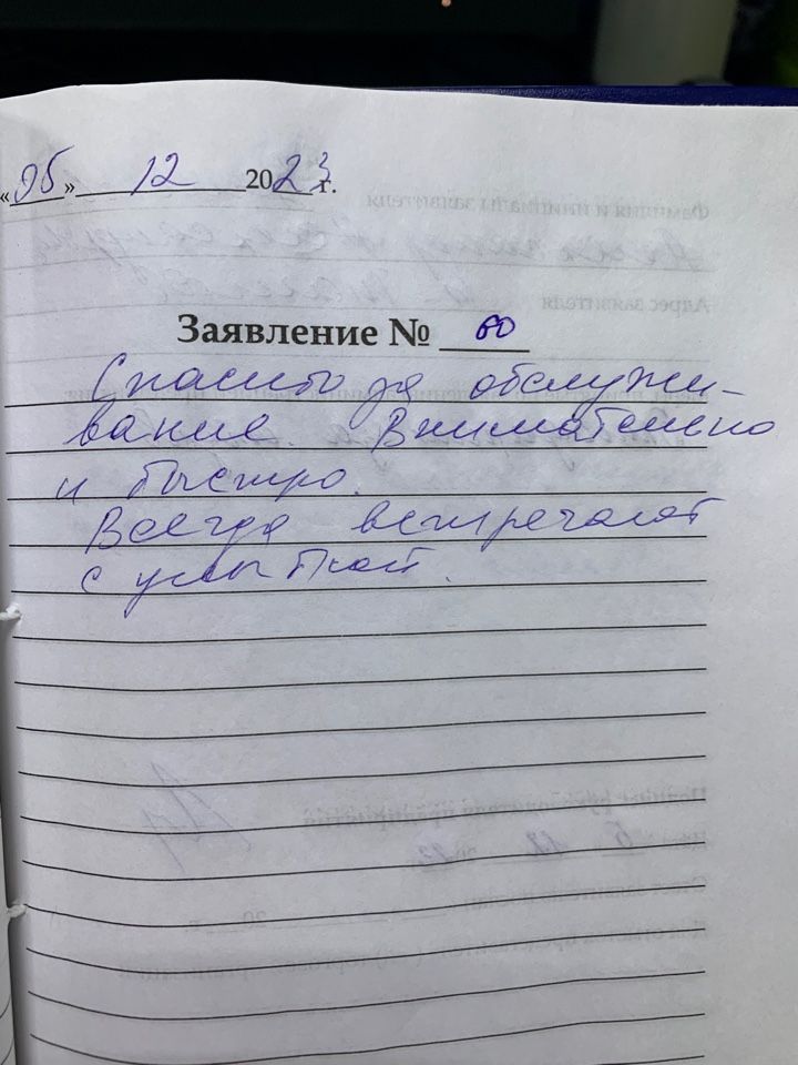 Спасибо за обслуживание. Внимательно и быстро. Всегда встречают с улыбкой.