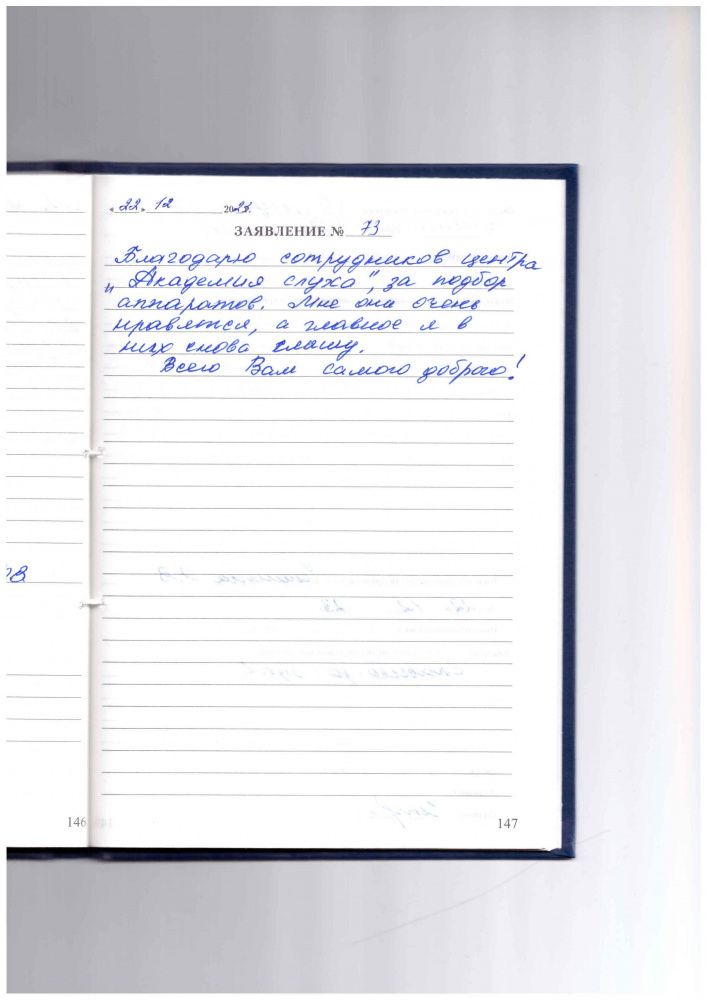 Благодарю сотрудников центра "Академия слуха" за подбор аппаратов. Мне они очень нравятся,а главное я в них снова слышу.Всего Вам самого доброго!