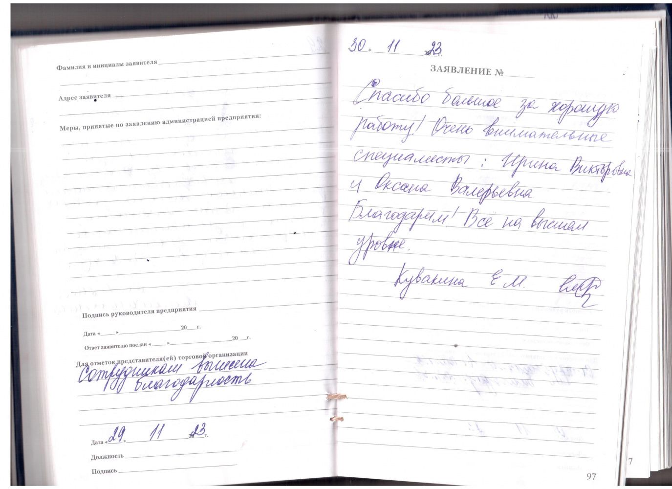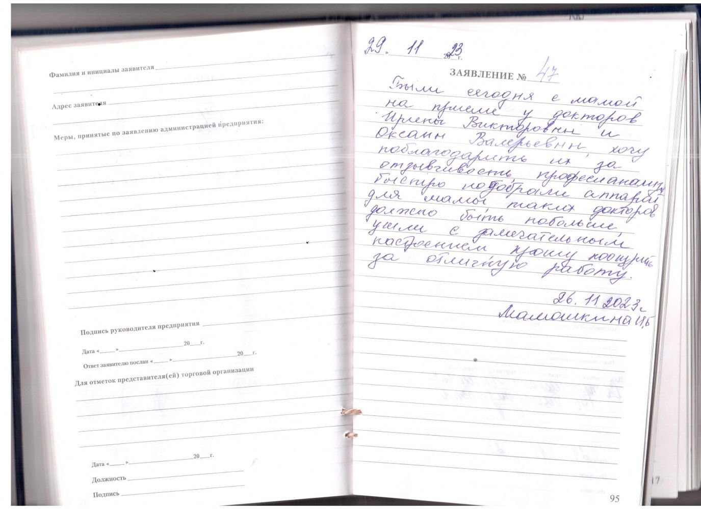 Спасибо большое за хорошую работу! Очень внимательные специалисты: Ирина Викторовна и Оксана Валерьевна. Благодарим! Все на высшем уровне.