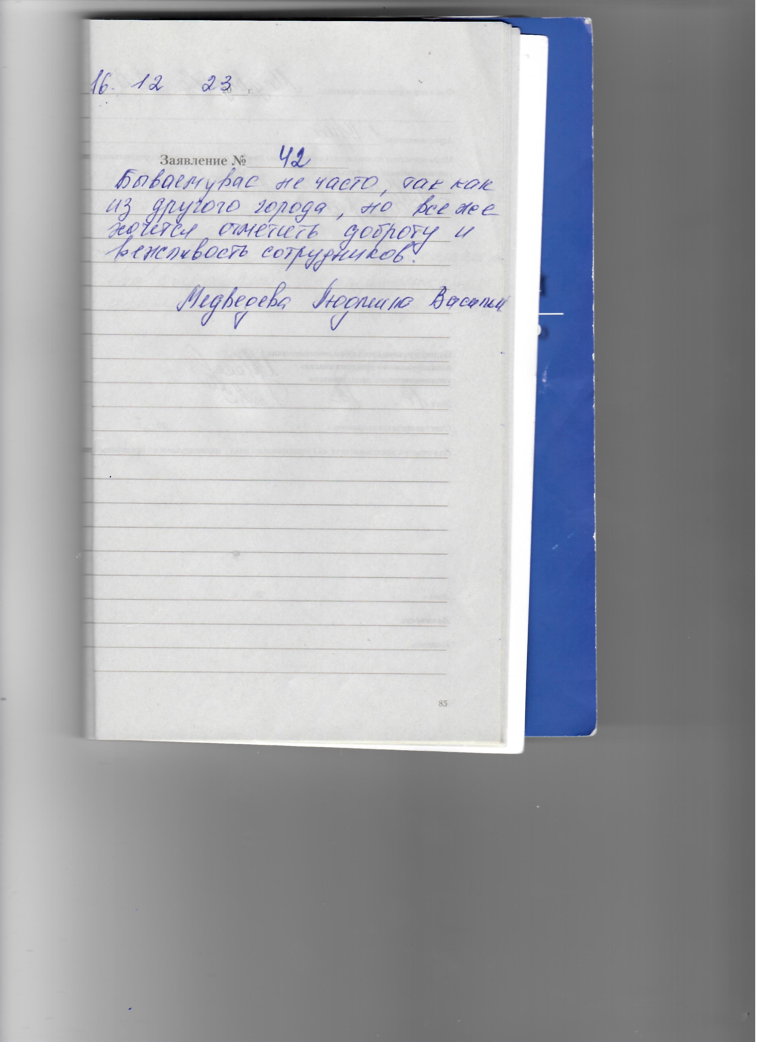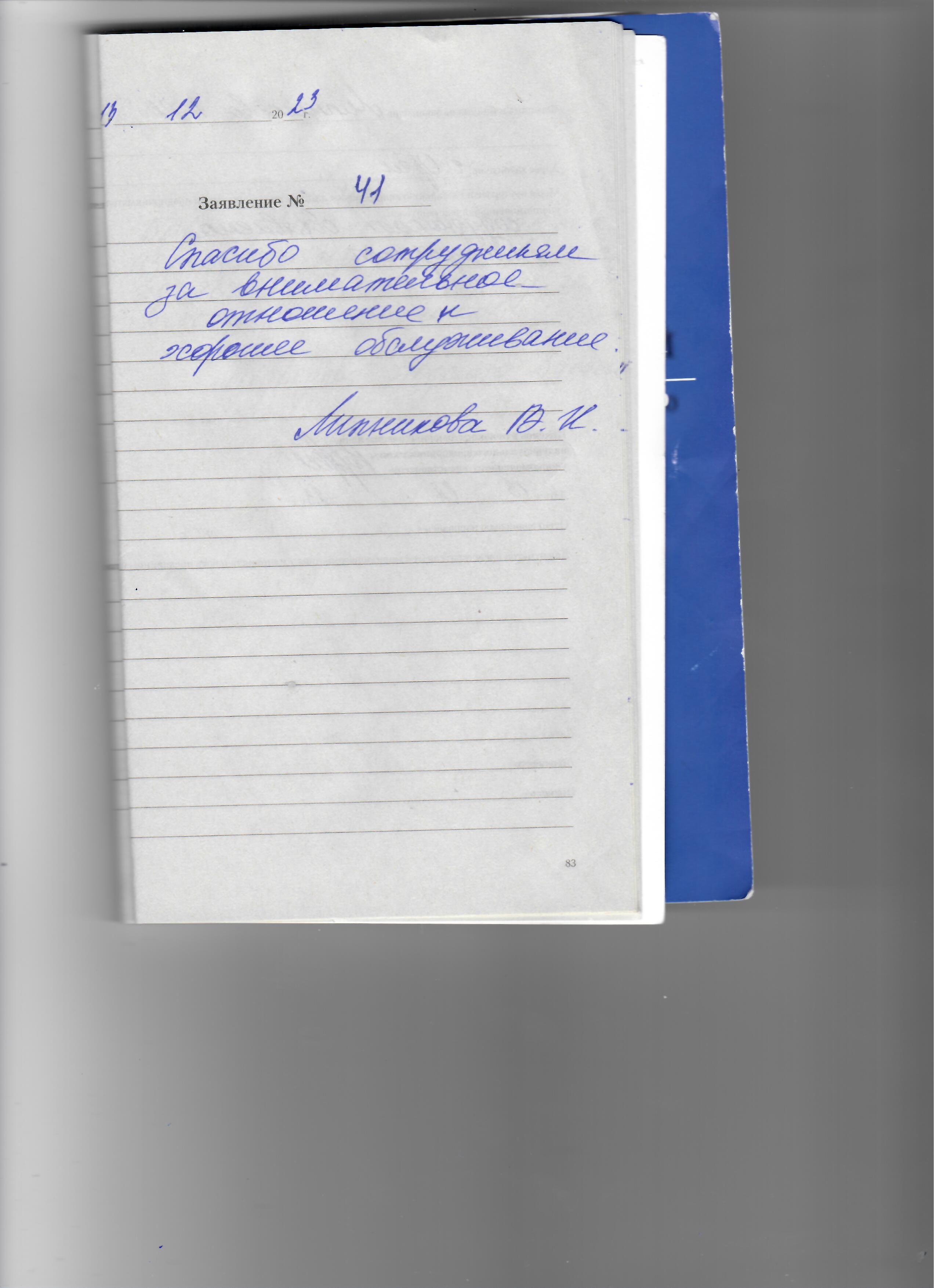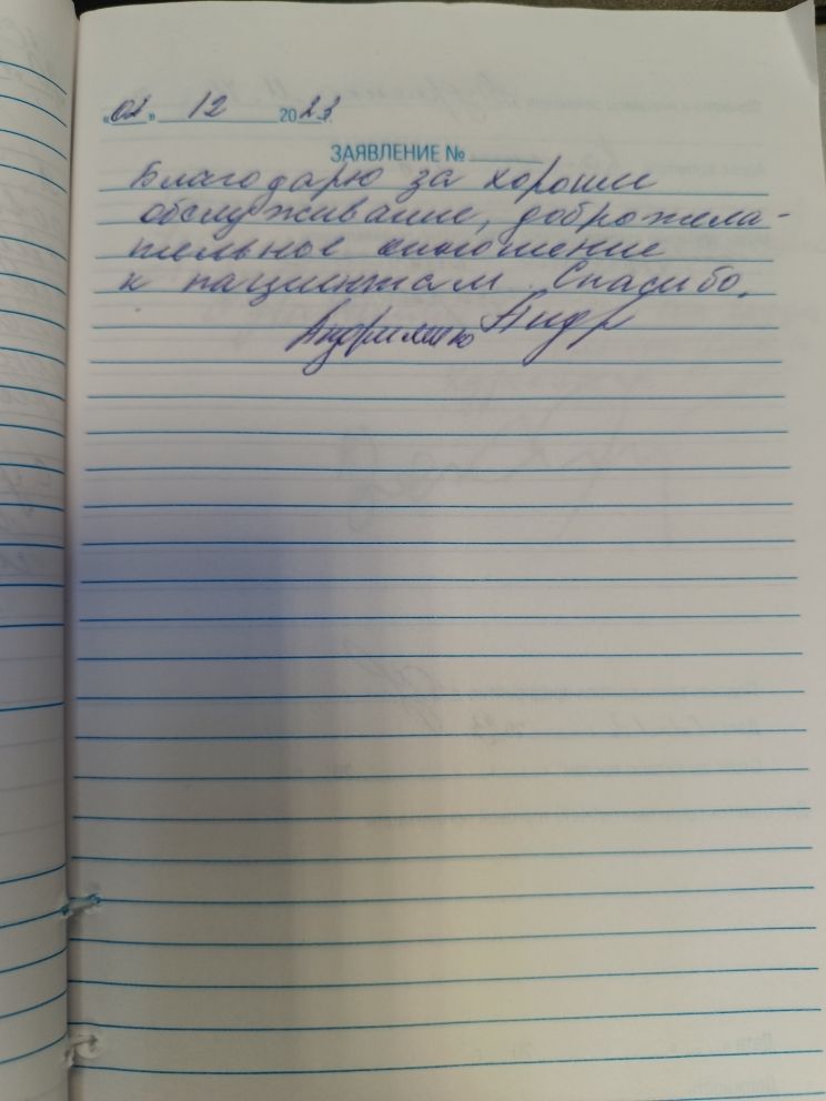 Благодарю за хорошее обслуживание, доброжелательное отношение к пациентам. Спасибо.
