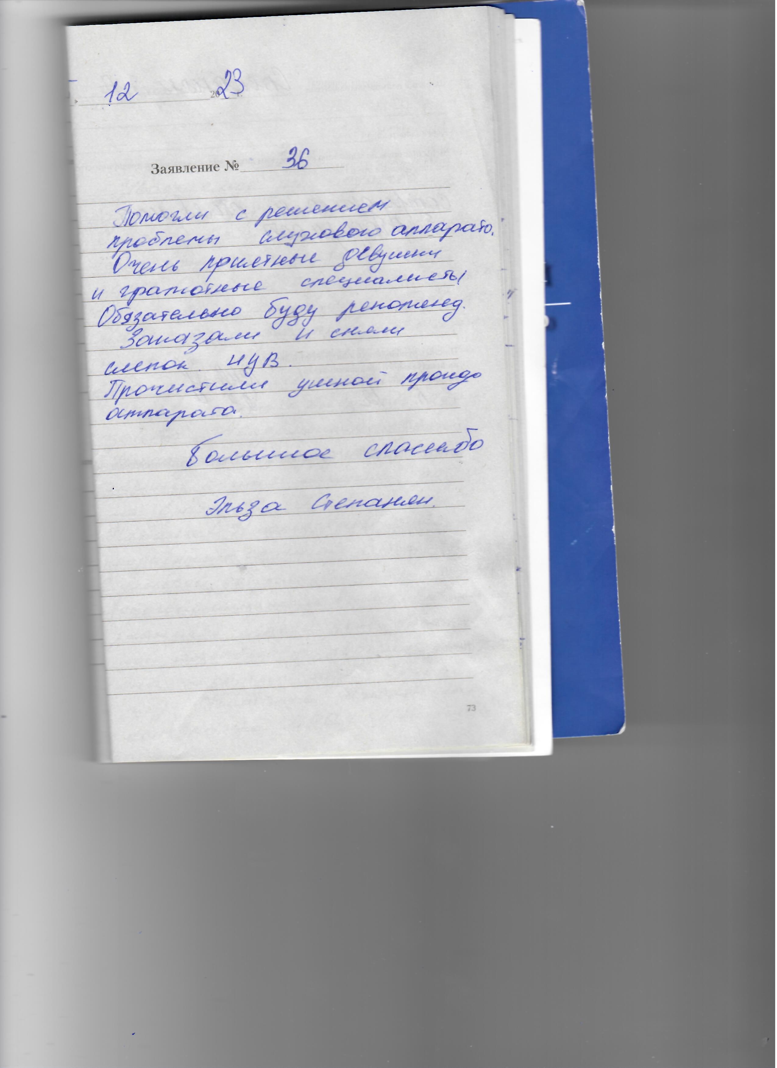 Помогли с решением проблемы слухового аппарата. Очень приятные девушки и грамотные специалисты . Обязательно буду рекомендовать . Заказали с няли слепок ИУВ . Прочистили ушной проход аппарата.