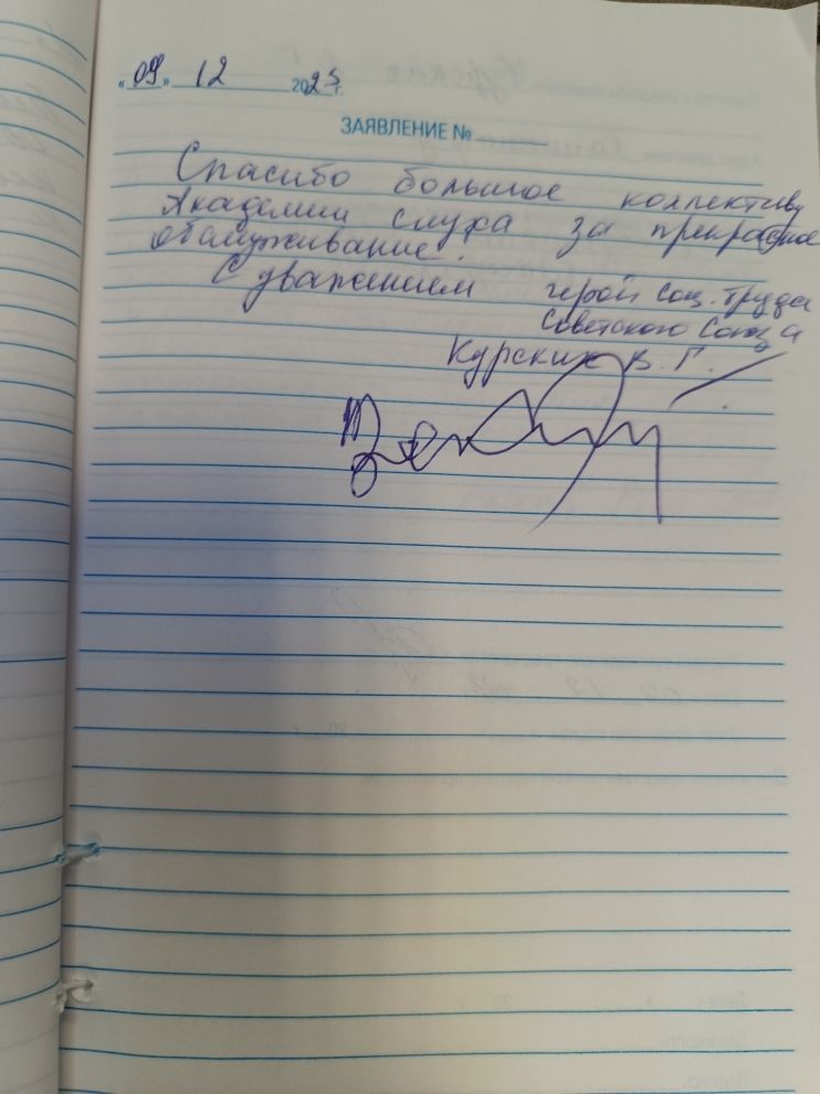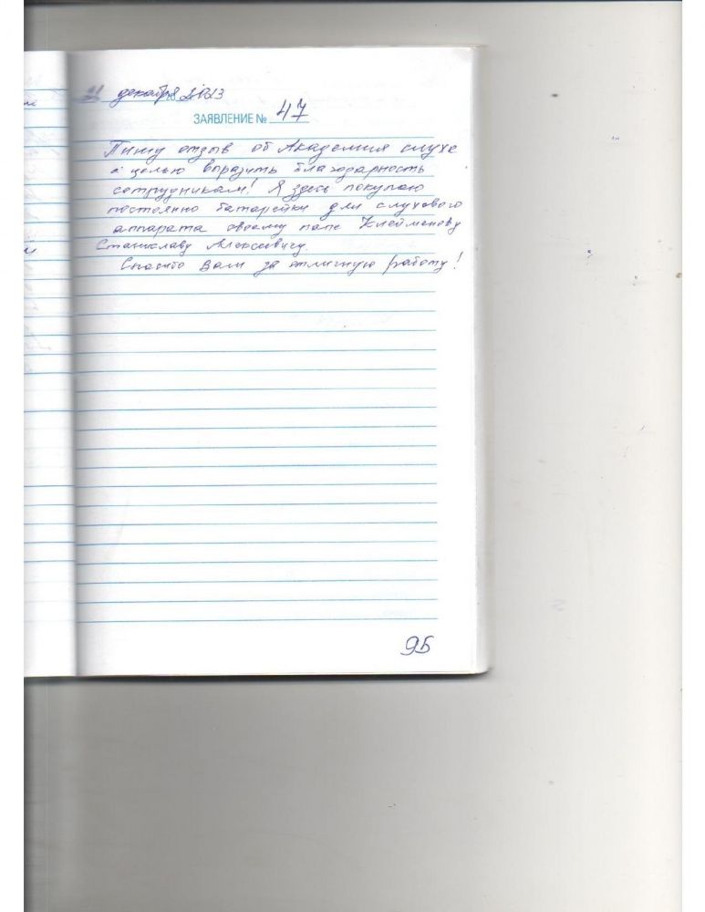 Спасибо большое коллективу Академия слуха за прекрасное обслуживание. С уважением герой Соц. труда Советского Союза Курских В.Г.