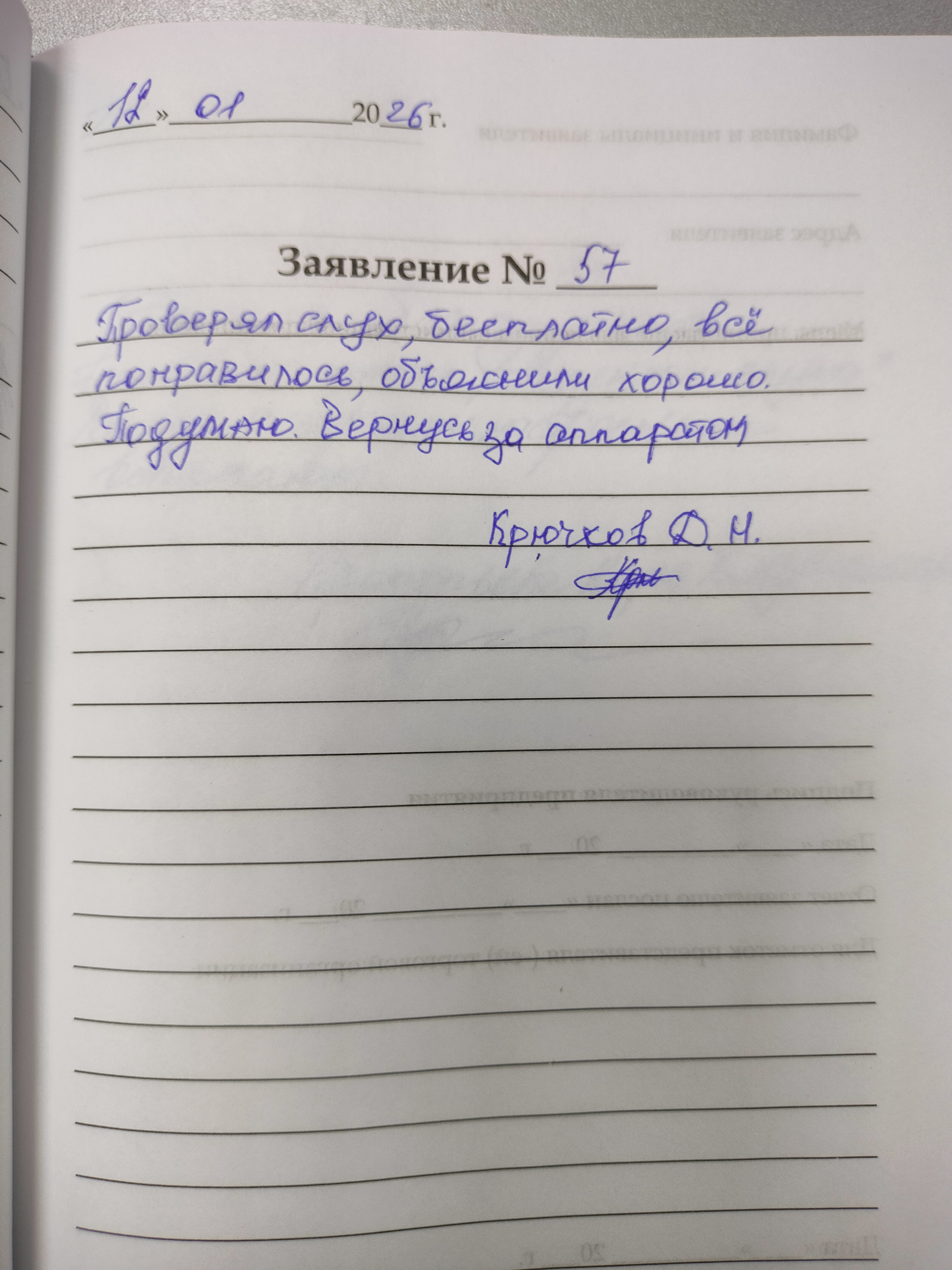 Проверял слух, бесплатно, все понравилось, объяснили хорошо. Подумаю. Вернусь за аппаратом.