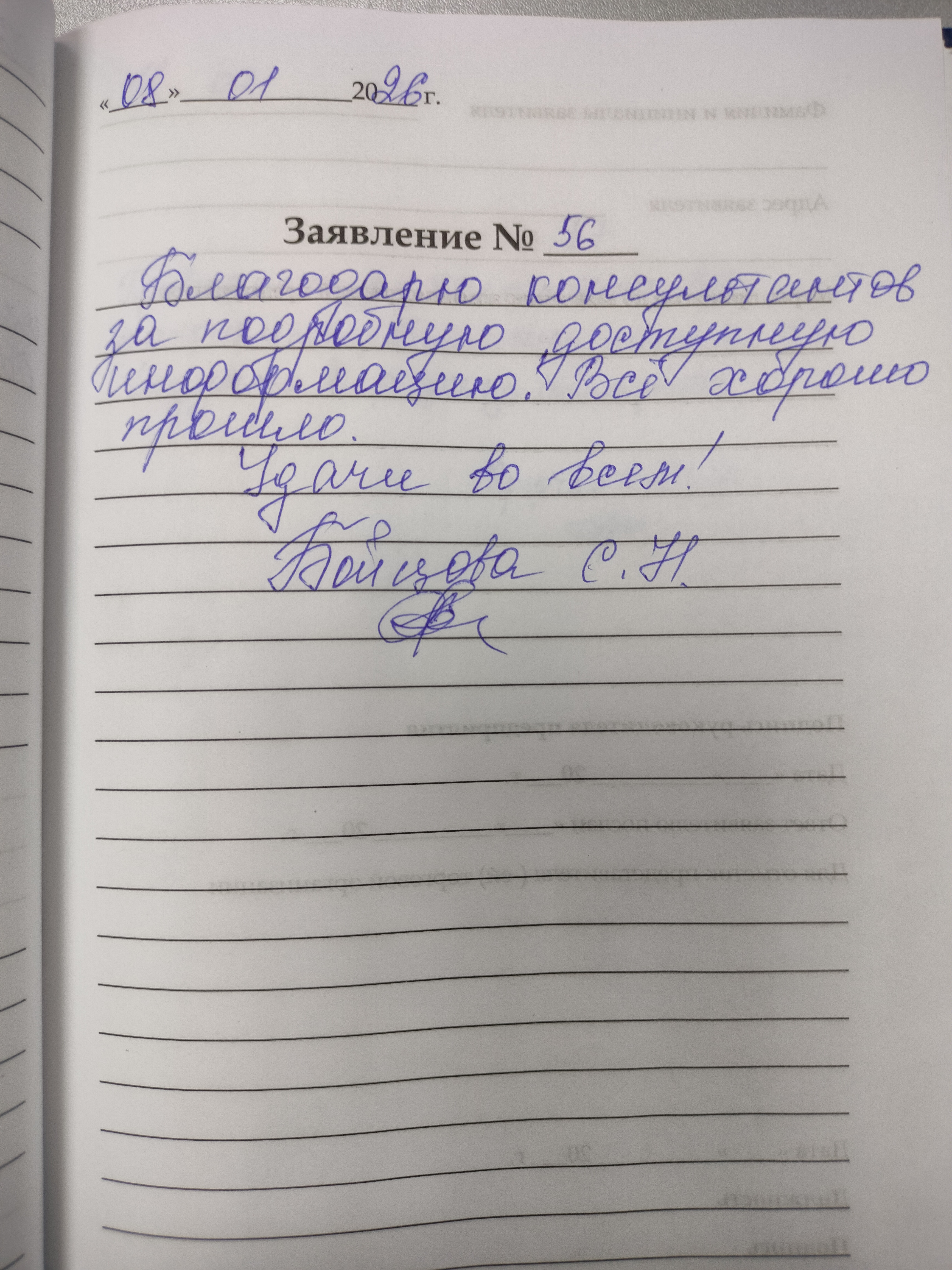 Я, Бондаренко Наталья Ивановна выражаю большую благодарность сотрудникам Елене Петровне и Ольге Викторовне за внимательное, доброе отношение, за профессионализм и желание помочь. Спасибо!