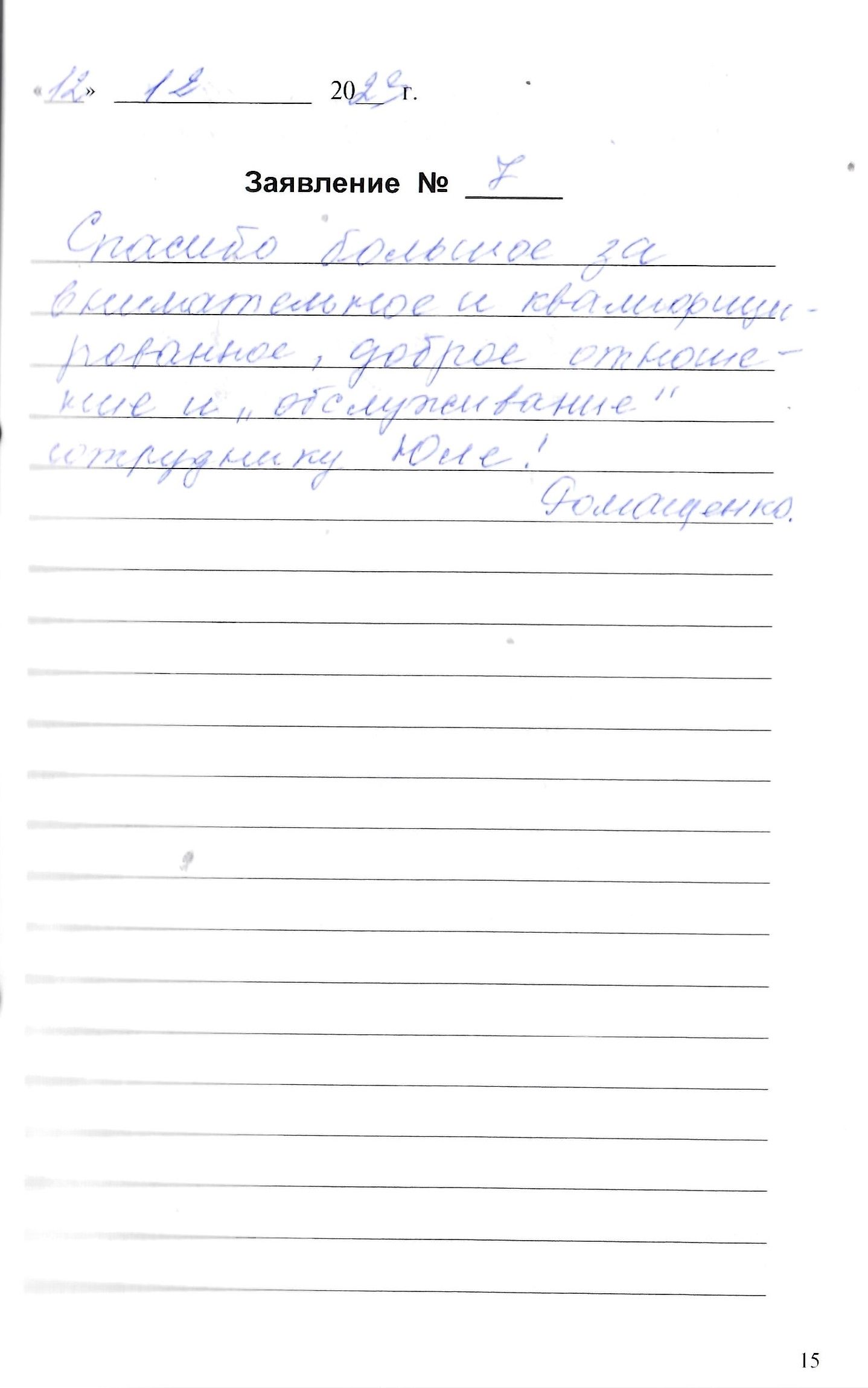 Спасибо большое за внимательное и квалифицированное, доброе отношение и "обслуживание" сотруднику Юле!