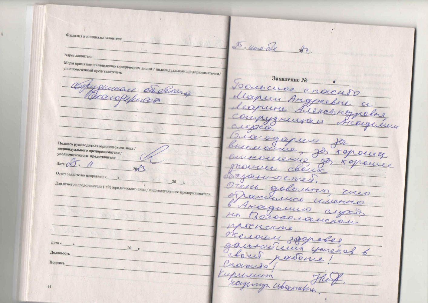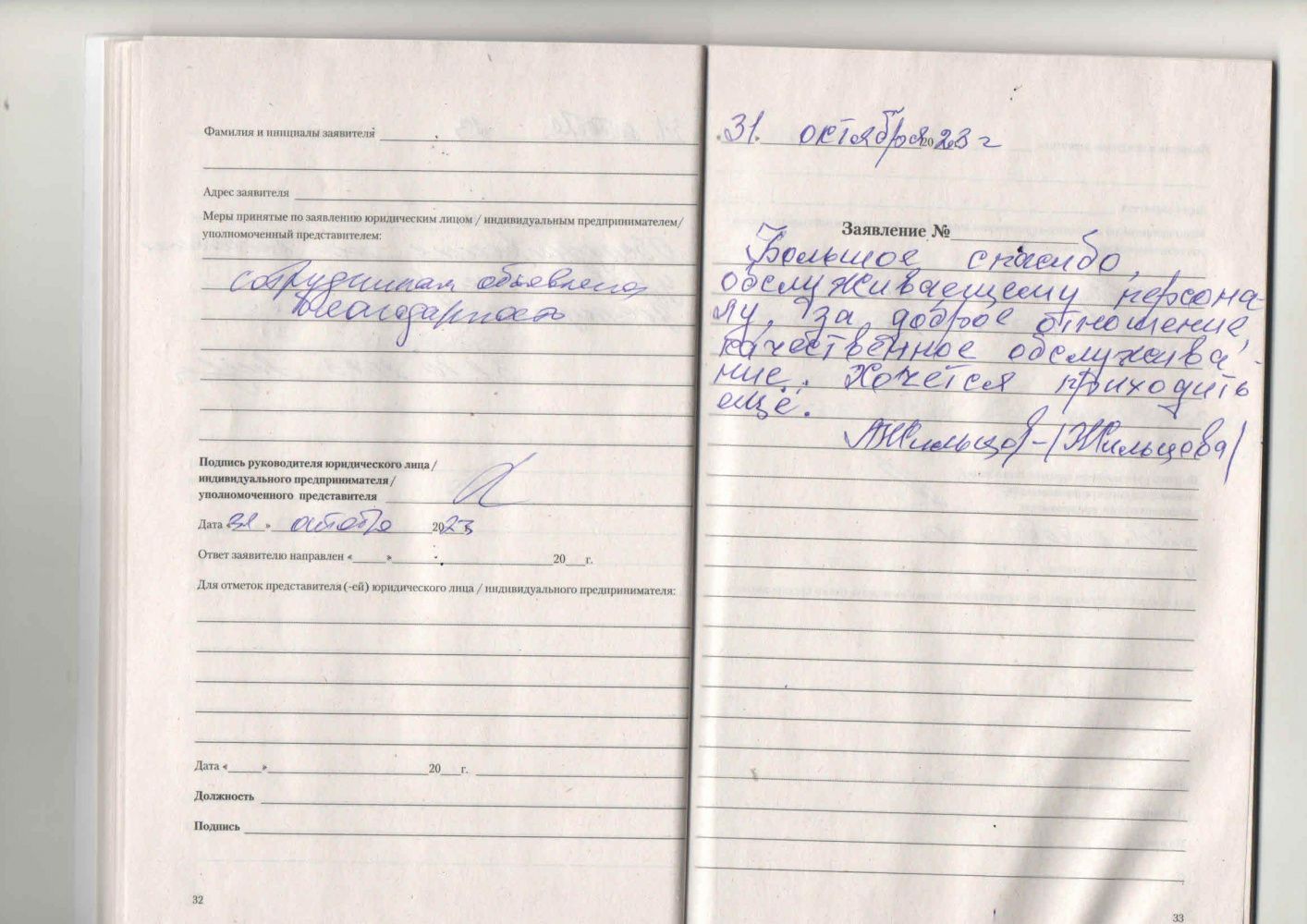 Большое спасибо обслуживающему персоналу за доброе отношение, качественное обслуживание. Хочется приходить еще.