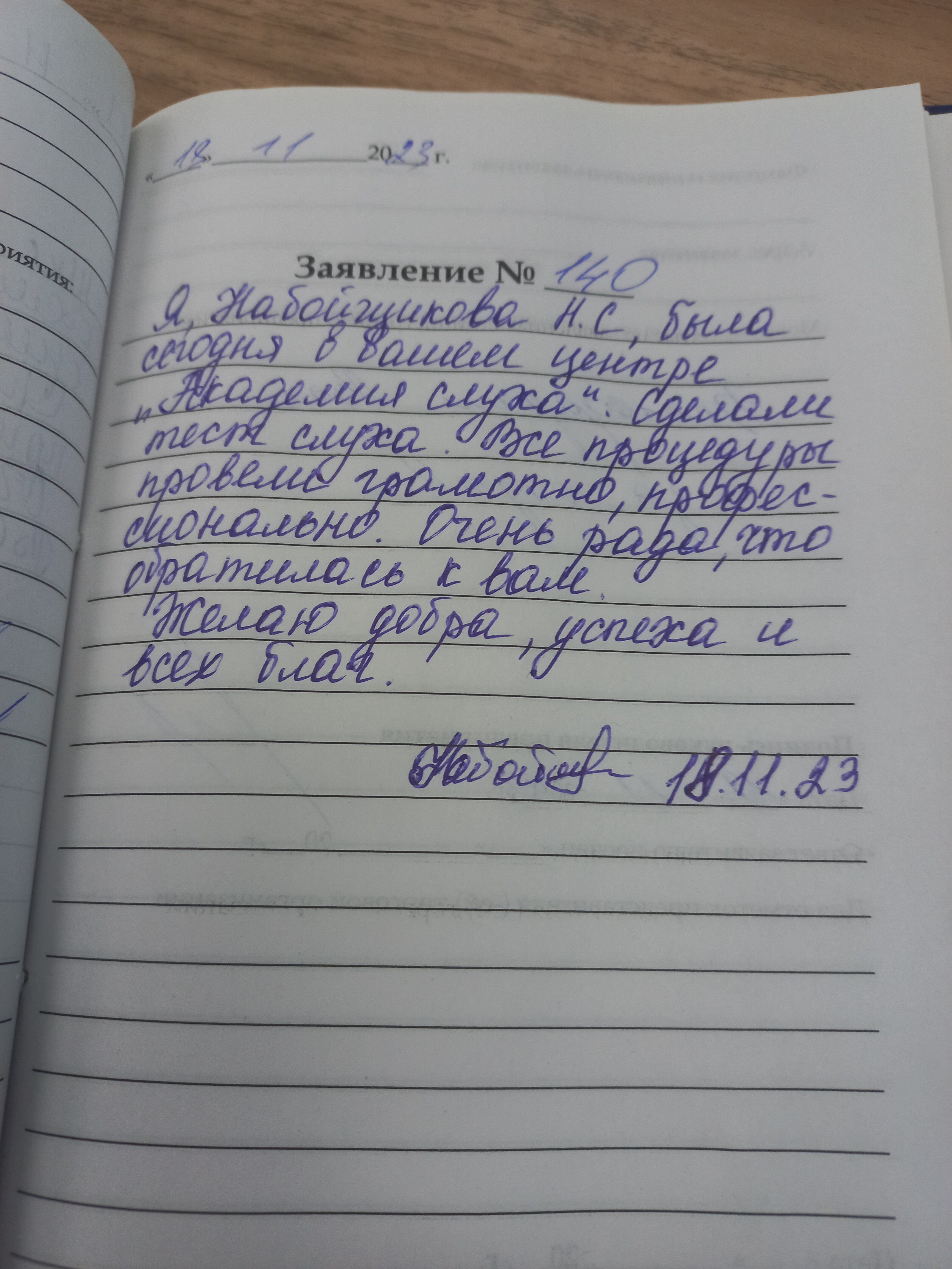 Благодарю за ответственное и вежливое обслуживание и своевременный аппаратный ремонт моих слуховых аппаратов .С Уважением ветеран вооруженных сил РФ подполковник Калиниченко.