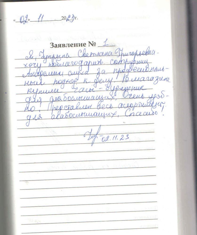 Выражаю огромную благодарность коллективу за ваше внимание, за чуткость к своим клиентам.